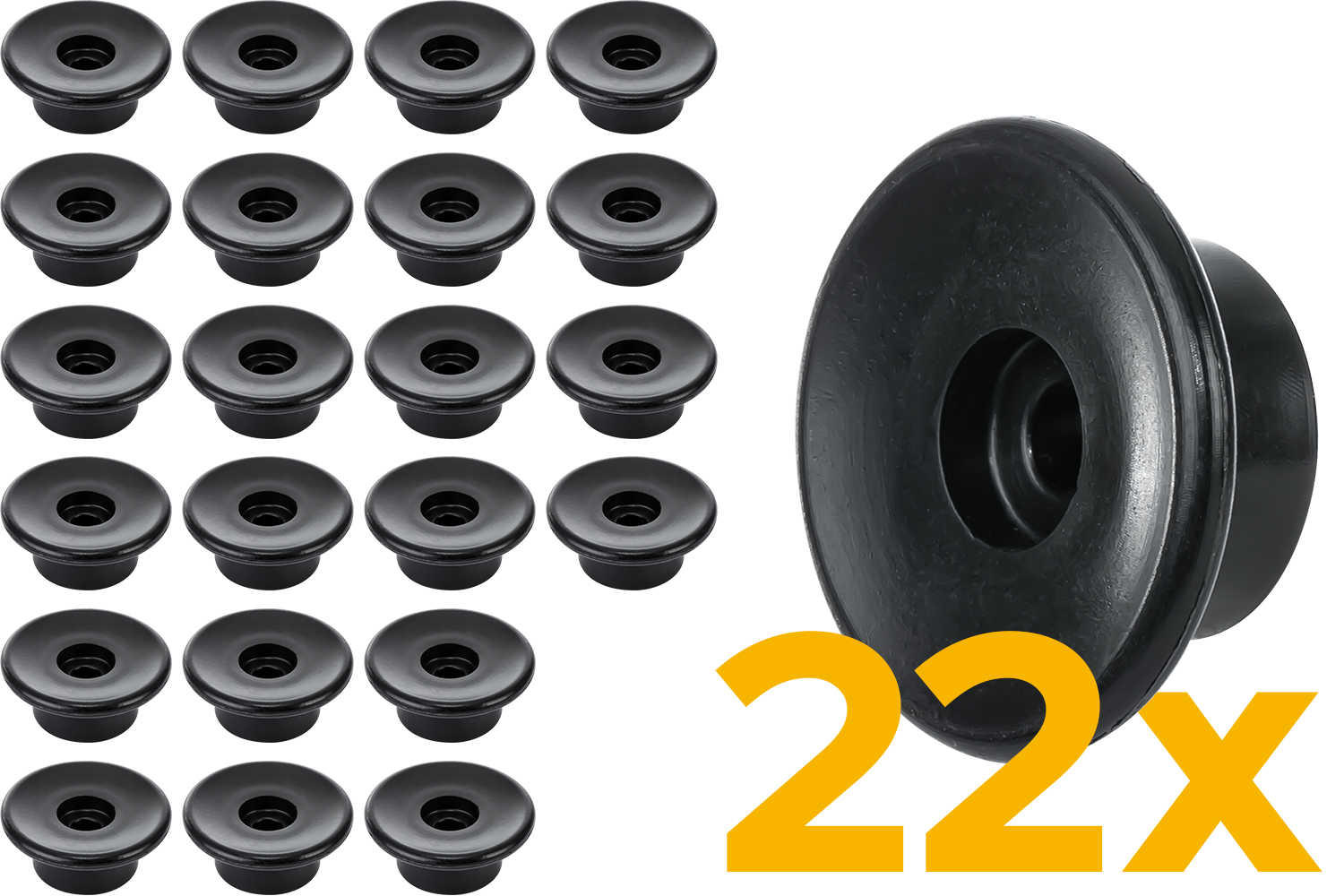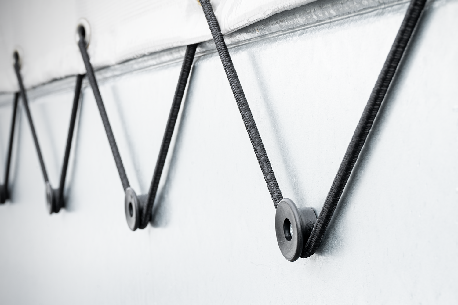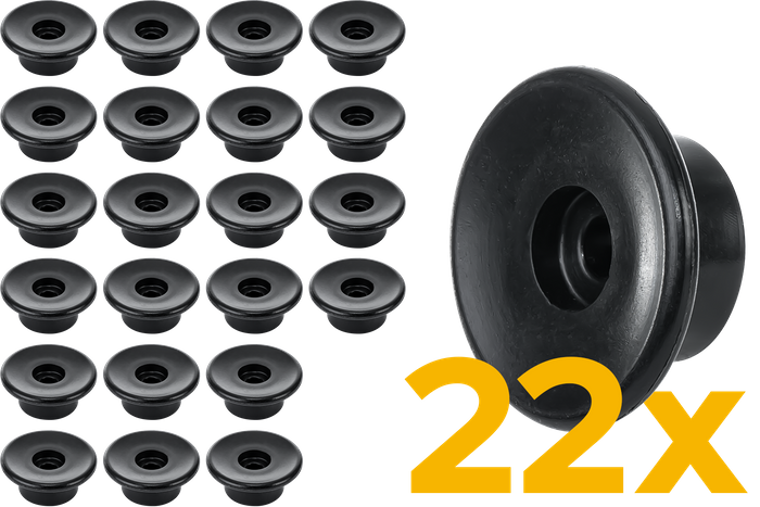 - Sada 22 bočních válečků o průměru 30 mm pro přívěsy automobilů a dodávky. Určeno k upevnění krytů, sítí a plachet k bočnici pomocí elastického lana.