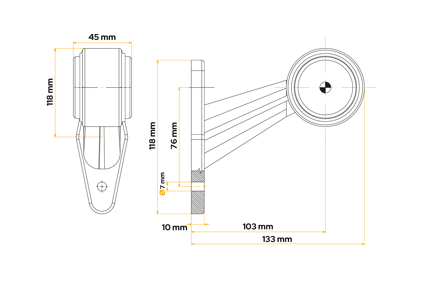 LED obrysová svítilna FT-009 C od FRISTOM je určena pro montáž na levou i pravou stranu vozidla a vyznačuje se následujícími rozměry: šířka 118 mm, výška 133 mm, hloubka 45 mm . Je navržen pro provoz v rozsahu napětí 12-24 V , lze jej použít v přívěsech, zemědělských strojích, nákladních automobilech a přívěsech, což podtrhuje jeho univerzálnost. Vybaveno krátkým, diagonálním pryžovým výložníkem pro montáž a 0,5 m dlouhý plochý kabel umožňuje snadnou a rychlou instalaci. Díky použití LED technologie Lampa poskytuje vysoký výkon, odolnost a energetickou účinnost, což zajišťuje bezpečnost v různých silničních podmínkách.
