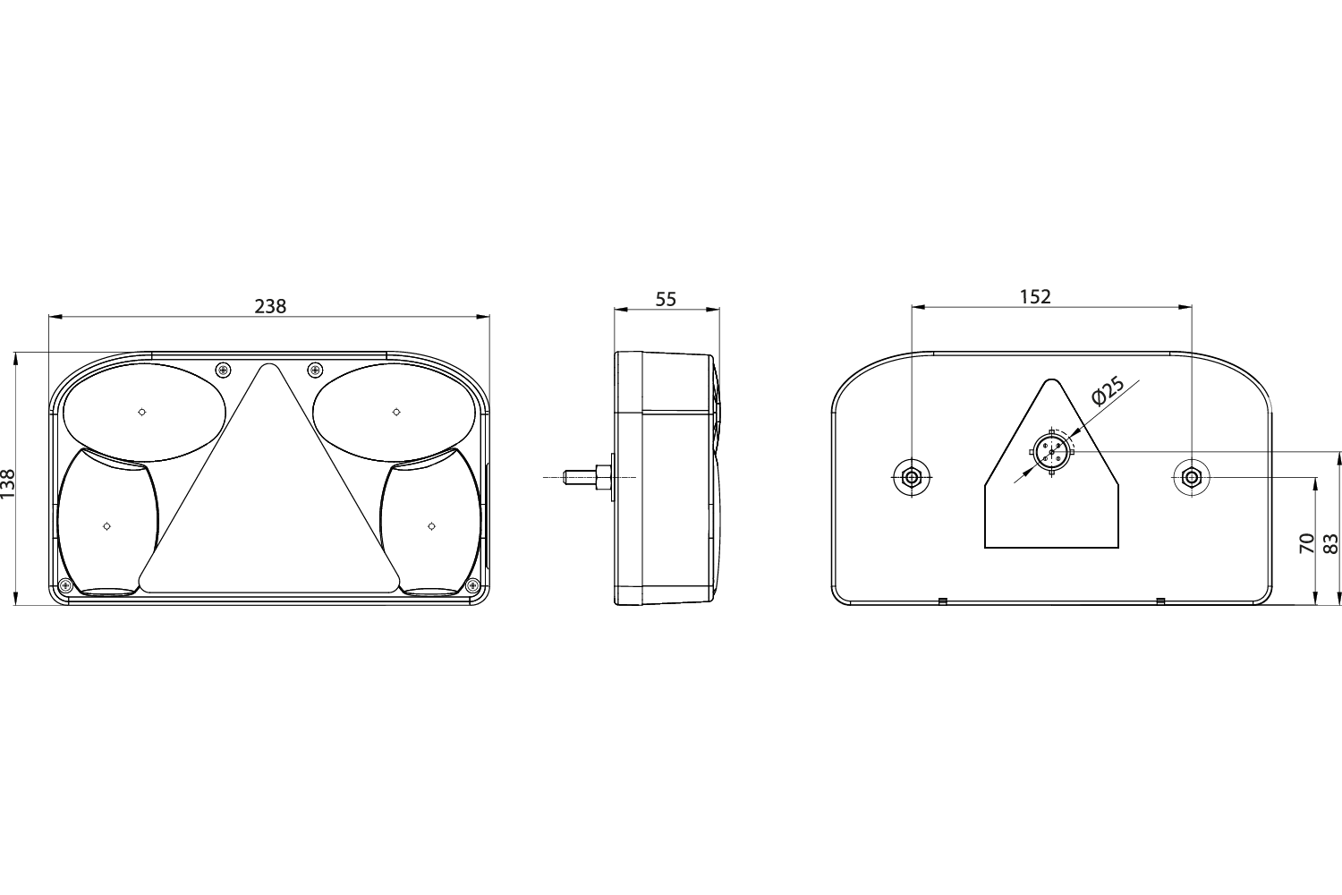 Zadní svítilna FT-088 od FRISTOM je určena pro montáž na levou stranu vozidla a má tyto rozměry: šířka 238 mm, výška 138 mm, hloubka 55 mm . Je vybavena 5pinovým bajonetovým konektorem , což umožňuje snadnou a rychlou instalaci v přívěsech, autobusech nebo přívěsech .