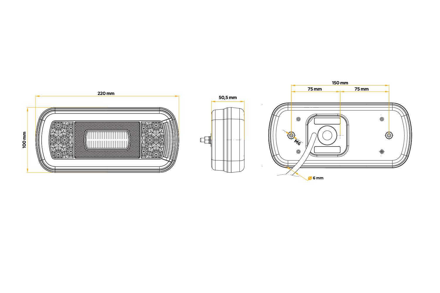 Zadní LED svítilna FT-130 od firmy ASPOCK je určena pro montáž na levou i pravou stranu vozidla a má tyto rozměry: šířka 220 mm, výška 100 mm, hloubka 50,5 mm . Uzpůsoben pro provoz v rozsahu napětí 12-36 V se používá v přívěsech, nákladních a odtahových vozech, což zdůrazňuje jeho univerzálnost. Je vybaven 1 m dlouhým kabelem , což umožňuje snadnou a rychlou instalaci. Díky použití technologie LED lampa zajišťuje vysokou účinnost, odolnost a energetickou účinnost, což zaručuje bezpečnost v různých podmínkách vozovky.