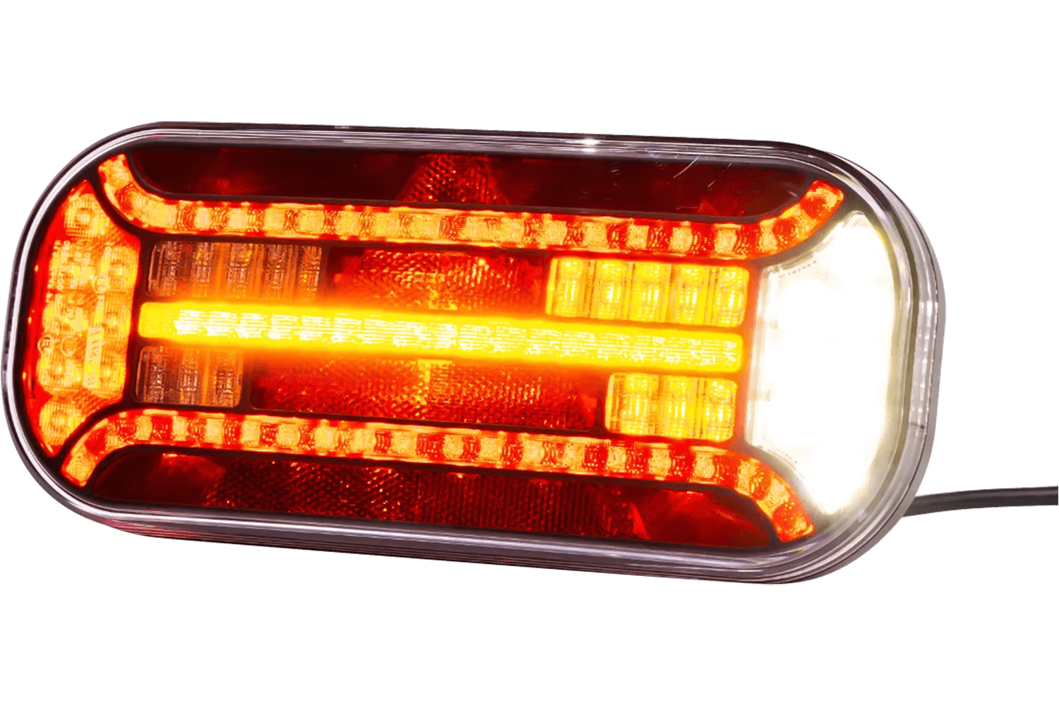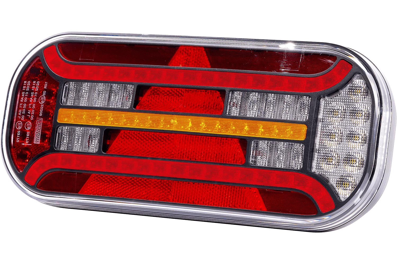 - Zadní LED svítilna FT-610 pro instalaci na levou stranu. Má šest funkcí: poziční světlo, brzdové světlo, couvací světlo, mlhové světlo, blinkr a reflexní trojúhelník. Ideální pro použití v přívěsech a nákladních vozidlech.