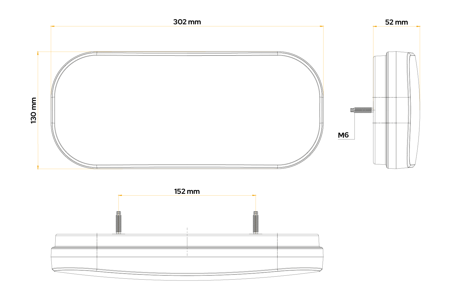 Zadní LED svítilna FT-610 od ASPOCK je určena pro montáž na levou stranu vozidla a má tyto rozměry: šířka 302 mm, výška 130 mm, hloubka 51 mm . Uzpůsobený pro provoz v rozsahu napětí 12-36 V se používá v přívěsech, nákladních a odtahových vozech, což zdůrazňuje jeho univerzálnost. Je vybaven 1 m dlouhým kabelem , což umožňuje snadnou a rychlou instalaci. Díky použití technologie LED lampa zajišťuje vysokou účinnost, odolnost a energetickou účinnost, což zaručuje bezpečnost v různých podmínkách vozovky. Konstrukce lampy je hermetická, odolná proti nárazům a mechanickému poškození a má také elektrickou ochranu proti přepólování, což dále zvyšuje její spolehlivost v náročných provozních podmínkách.