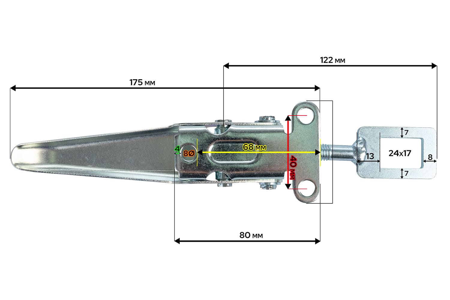 Excentrické boční tažné zařízení BUSSCHER A06250 je robustní příslušenství určené k bezpečnému a trvalému upevnění boků nákladních, zemědělských a užitkových přívěsů. Tažné zařízení je dlouhé 242 mm a má montážní základnu o výšce 80 mm .