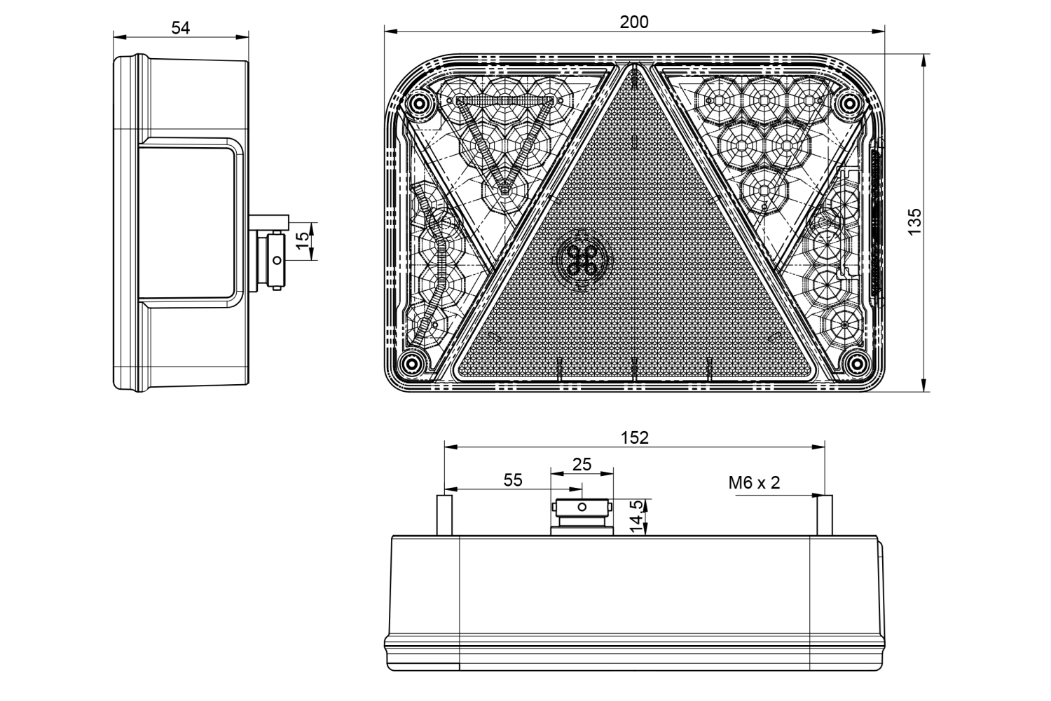Zadní LED světlo DPT35 od DOBPLAST , určené k montáži na pravou stranu vozidla , měří 200 mm na šířku , 135 mm na výšku a 54 mm do hloubky . Je navrženo pro provoz s 12V napájením a je vhodné pro použití na lehkých přívěsech, dodávkách a návěsech, což dále zvyšuje jeho všestrannost . Je vybaveno 5pinovým bajonetovým konektorem pro rychlou a snadnou instalaci. Díky LED technologii poskytuje světlo vysoký výkon, odolnost a energetickou účinnost, což zajišťuje bezpečnost v různých silničních podmínkách. Světlo je vybaveno vyměnitelnými, vodotěsnými LED moduly.