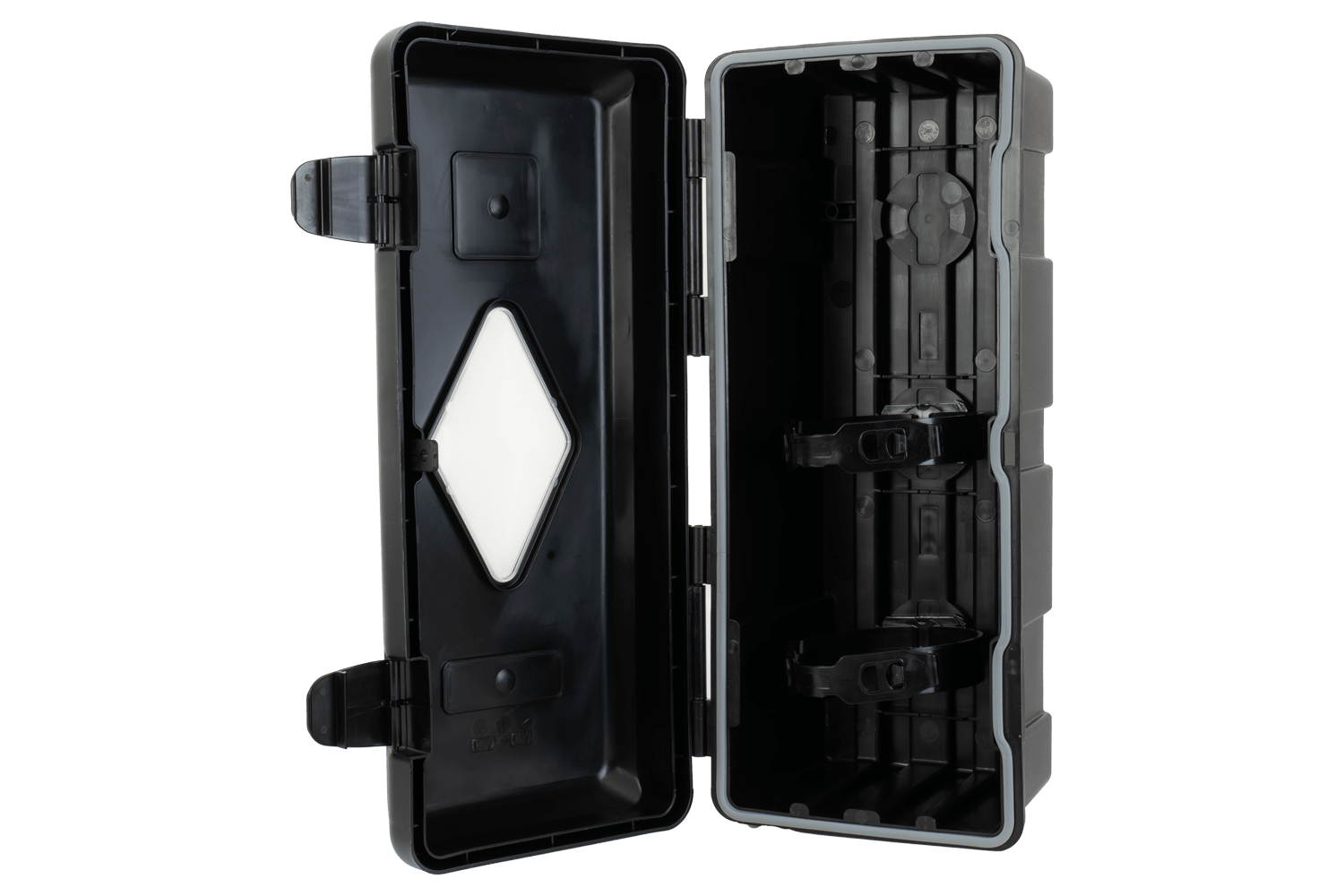 Krabice hasicího přístroje je vyrobena z vysoce kvalitního polypropylenu, nylonu a polykarbonátu, což zajišťuje mimořádnou odolnost a odolnost proti mechanickému poškození . Tyto materiály nabízejí vynikající ochranu proti ohni, vodě, prachu, palivu, UV záření a extrémním teplotám , díky čemuž je krabice ideální pro náročné provozní podmínky. Pevná konstrukce chrání obsah před vlivem škodlivých vnějších faktorů a inspekční okénko umožňuje rychlou kontrolu stavu hasicího přístroje, což zajišťuje pohodlí a bezpečnost používání.