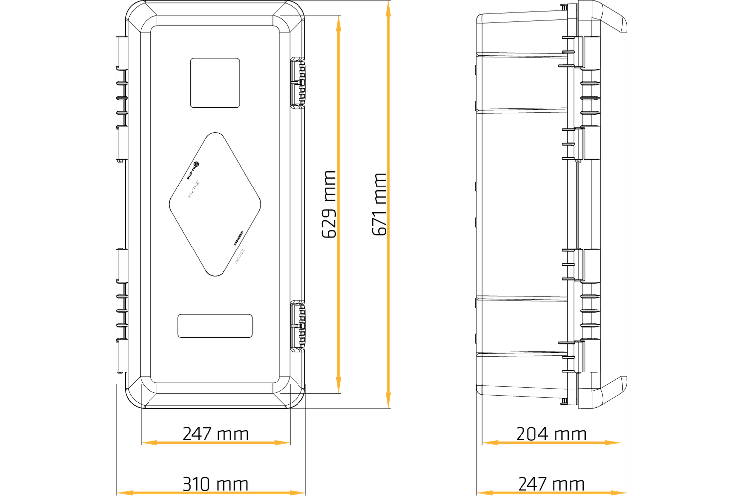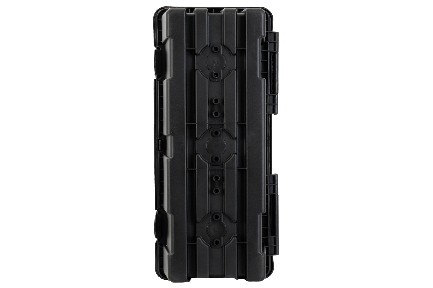 Krabice na hasicí přístroj DAKEN ADAMANT 82010 s rozměry 671 mm na výšku, 310 mm na šířku a 247 mm na hloubku je praktickým a spolehlivým řešením pro uložení 9kg hasicího přístroje ve vozidlech a přívěsech. Černá krabička je vybavena dvěma držáky na hasicí přístroje o průměru 170-190 mm a inspekčním okénkem, které umožňuje rychlou kontrolu přítomnosti a stavu hasicího přístroje bez nutnosti jeho otevírání, což usnadňuje pravidelnou kontrolu a zajišťuje pohodlné používání .