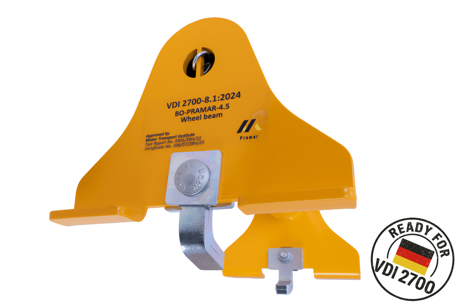 Zámek PRAMAR Radstopper je certifikován podle normy VDI 2700 pro zajištění vozidel do 4,5 tuny , což potvrzuje jeho bezpečnost a kvalitu v souladu s evropskými normami pro zajištění nákladu. Norma VDI 2700 poskytuje pokyny pro správné zajištění vozidel na přepravních plošinách a splnění jejích požadavků znamená, že výrobek byl testován na pevnost, stabilitu a funkčnost v silničních podmínkách. To uživatelům poskytuje jistotu, že zámek splňuje přísné požadavky na zajištění přepravovaných vozidel – a to jak v komerčních, tak i rezidenčních aplikacích.