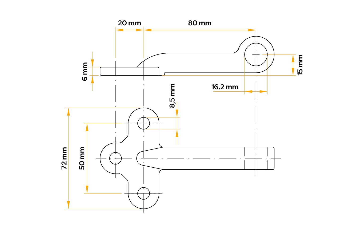 Konzola bočního závěsu je vyrobena z vysoce kvalitní pozinkované oceli , která zajišťuje vysokou tuhost a odolnost proti mechanickému poškození . Zinkový povlak účinně chrání součást před korozí a škodlivými účinky vnějších faktorů, jako je vlhkost, posypová sůl a měnící se povětrnostní podmínky. To zajišťuje dlouhou životnost a spolehlivost při každodenním používání.