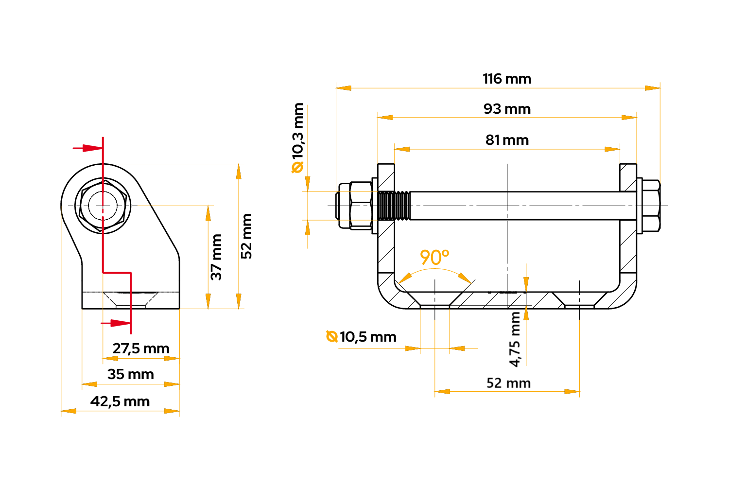 Držák bočního pantu UH-01 od společnosti STEELPRESS je odolný a přesně vyrobený komponent určený pro montáž do karoserií přívěsů, návěsů a dopravních vozidel. Držák je dlouhý 116 mm a široký 42,5 mm , takže je kompatibilní s mnoha standardními bočními panty. Je namontován přímo na rám karoserie a zajišťuje stabilní usazení pantů a plynulý chod při otevírání a zavírání boku, čímž zlepšuje funkčnost a bezpečnost celé konstrukce.