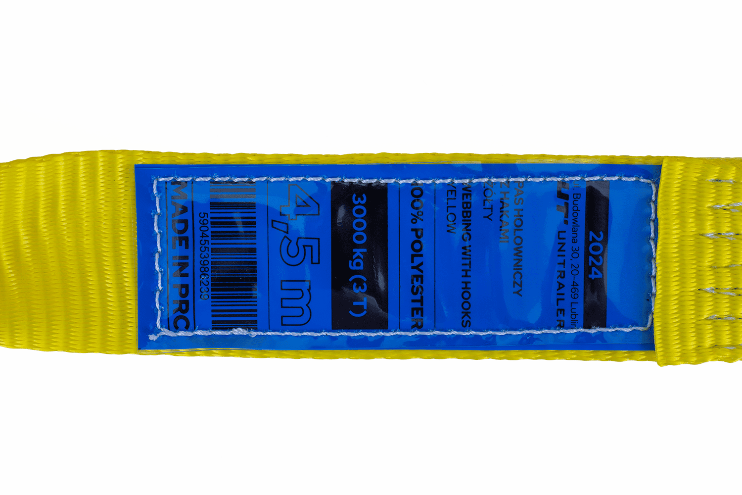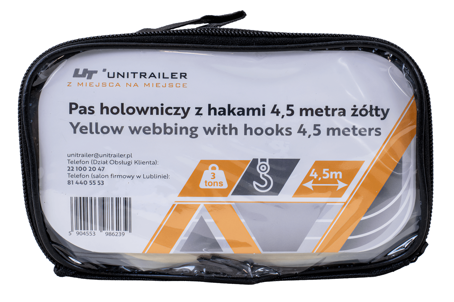 Společnost UNITRAILER dbá na kvalitu a bezpečnost svých produktů, a proto je tažný popruh vybaven odolnými ocelovými háky chráněnými proti korozi. Jasné značení na pásce a informační štítek v polštině a angličtině usnadňují identifikaci technických parametrů. Tento model je praktickým a nezbytným vybavením pro každého řidiče, zvyšuje bezpečnost a připravenost na neočekávané situace na silnici.