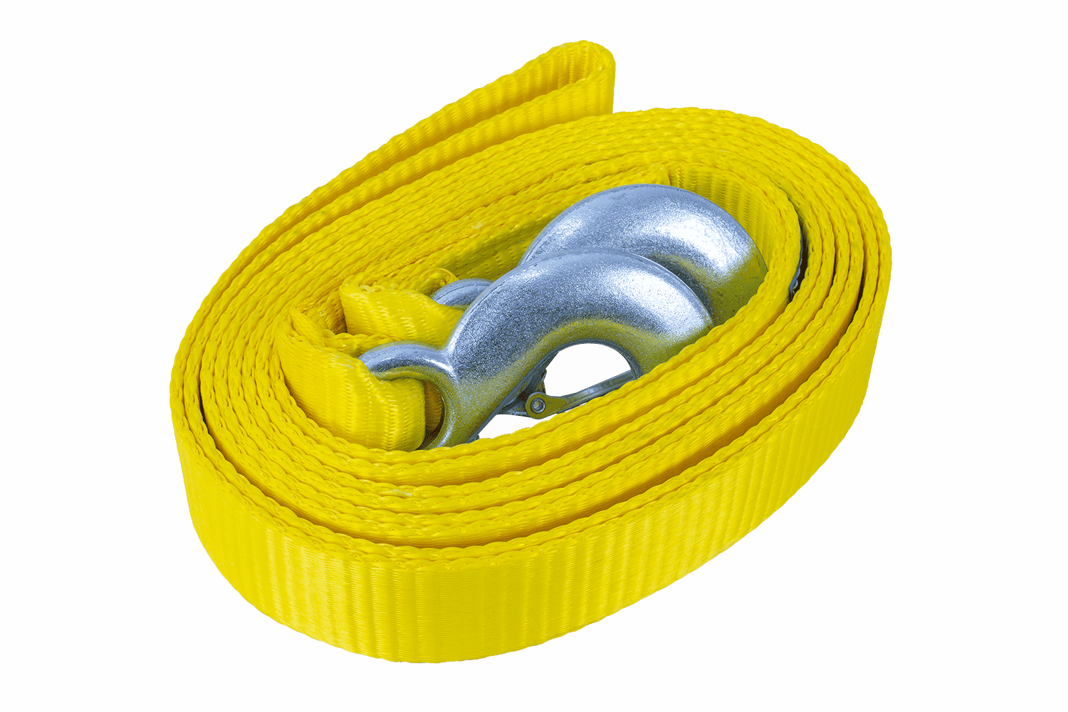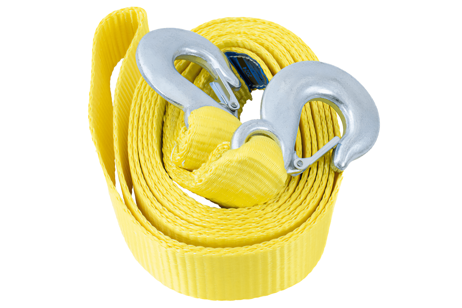 Žlutý tažný popruh UNITRAILER s háky je spolehlivým příslušenstvím pro nouzové odtahování osobních automobilů , dodávkových vozů a těžších strojů. Pás je vyroben z odolného 5 metrů dlouhého a 50 mm širokého syntetického popruhu, vhodného pro vysoké zatížení, a je na obou stranách vybaven pevnými ocelovými bezpečnostními háky . Maximální tažná síla je až 7,5 tuny (7 500 kg) , což umožňuje bezpečné a efektivní tažení i těžších vozidel v obtížných silničních podmínkách.