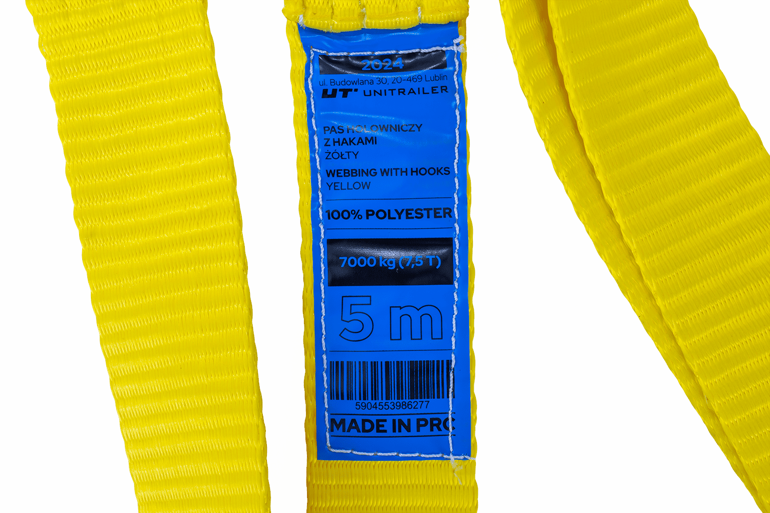 Společnost UNITRAILER dbá na kvalitu a bezpečnost svých produktů, a proto je tažný popruh vybaven odolnými ocelovými háky chráněnými proti korozi. Jasné značení na pásce a informační štítek v polštině a angličtině usnadňují identifikaci technických parametrů. Tento model je praktickým a nezbytným vybavením pro každého řidiče, zvyšuje bezpečnost a připravenost na neočekávané situace na silnici.