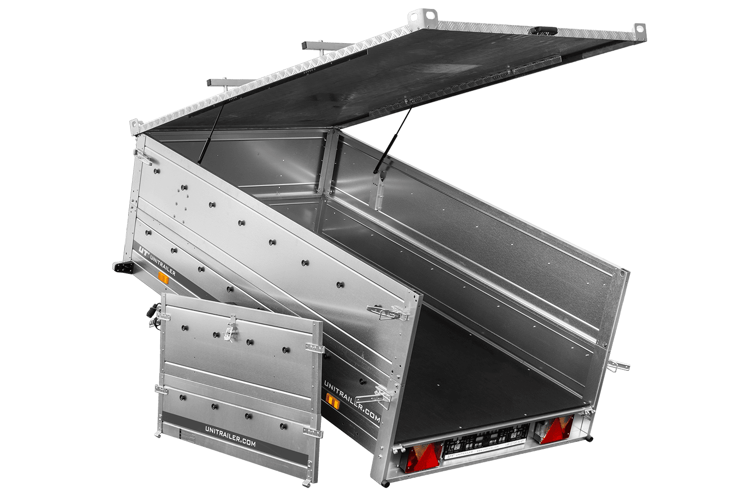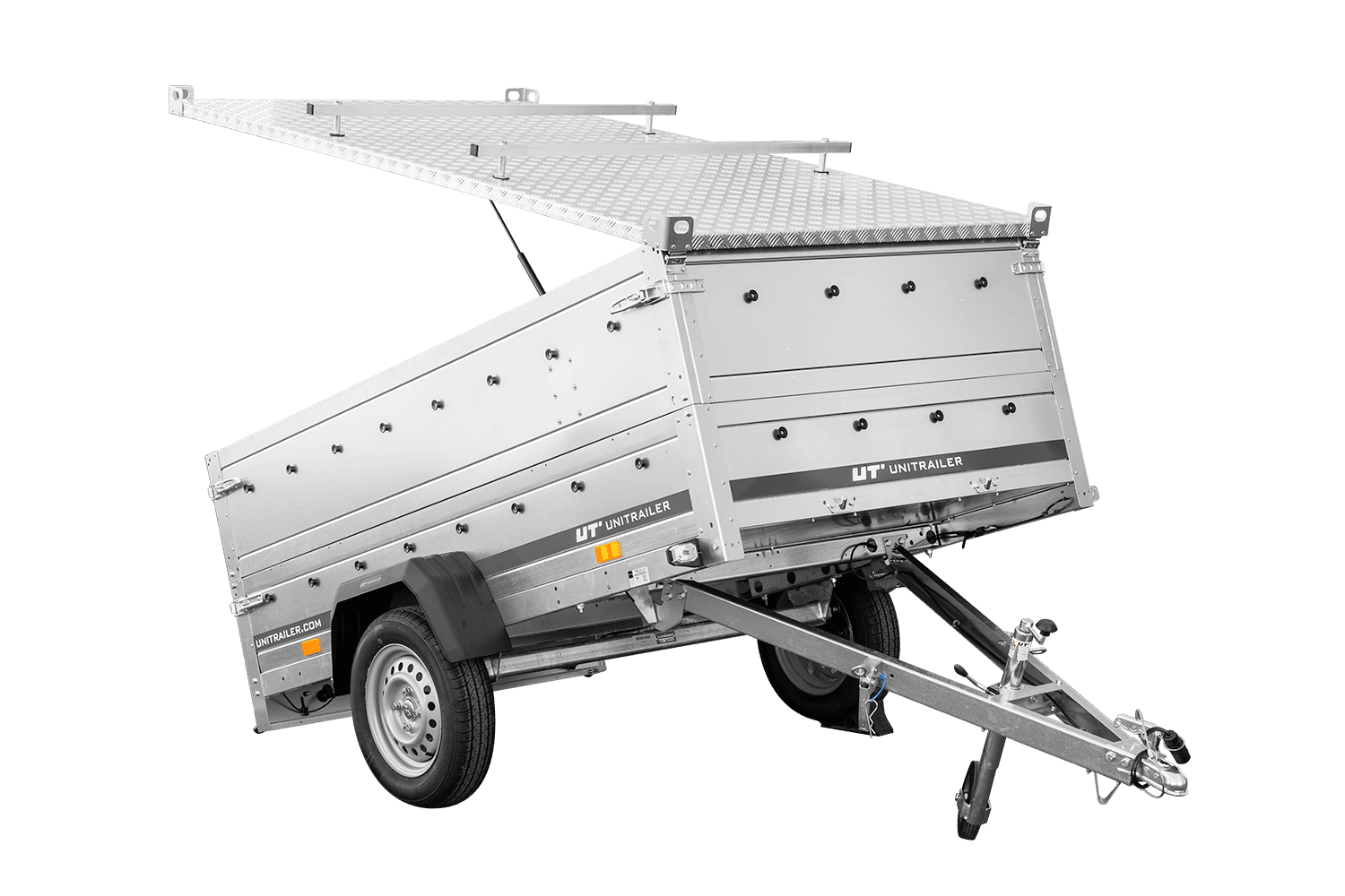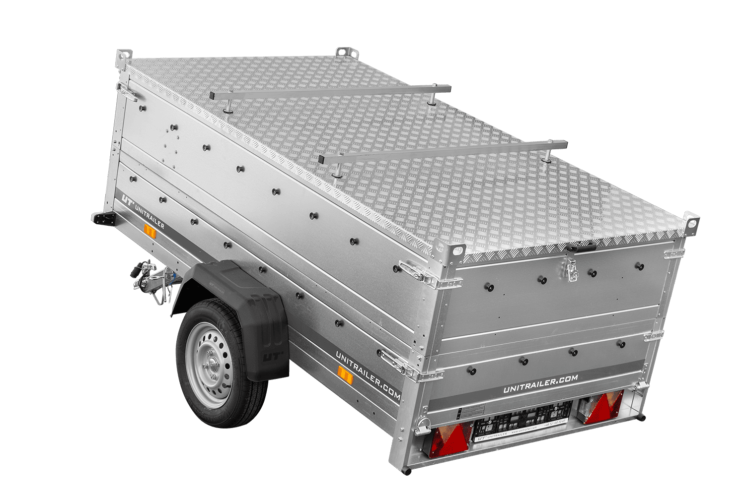 Hliníkový kryt pro přívěs UNITRAILER GARDEN TRAILER 230 KIPP . Lehký odolný kryt o hmotnosti pouze 55,72 kg, který ochrání přepravované zboží. Vybaveno dvojitými výztuhami na bocích, které zaručují pevnou polohu na bocích a navíc vyztužují celou konstrukci. V horní části krytu jsou namontované kolejnice, na které můžete umístit střešní nosič nebo nosič jízdních kol , čímž získáte ještě více prostoru pro přepravu různých druhů předmětů.