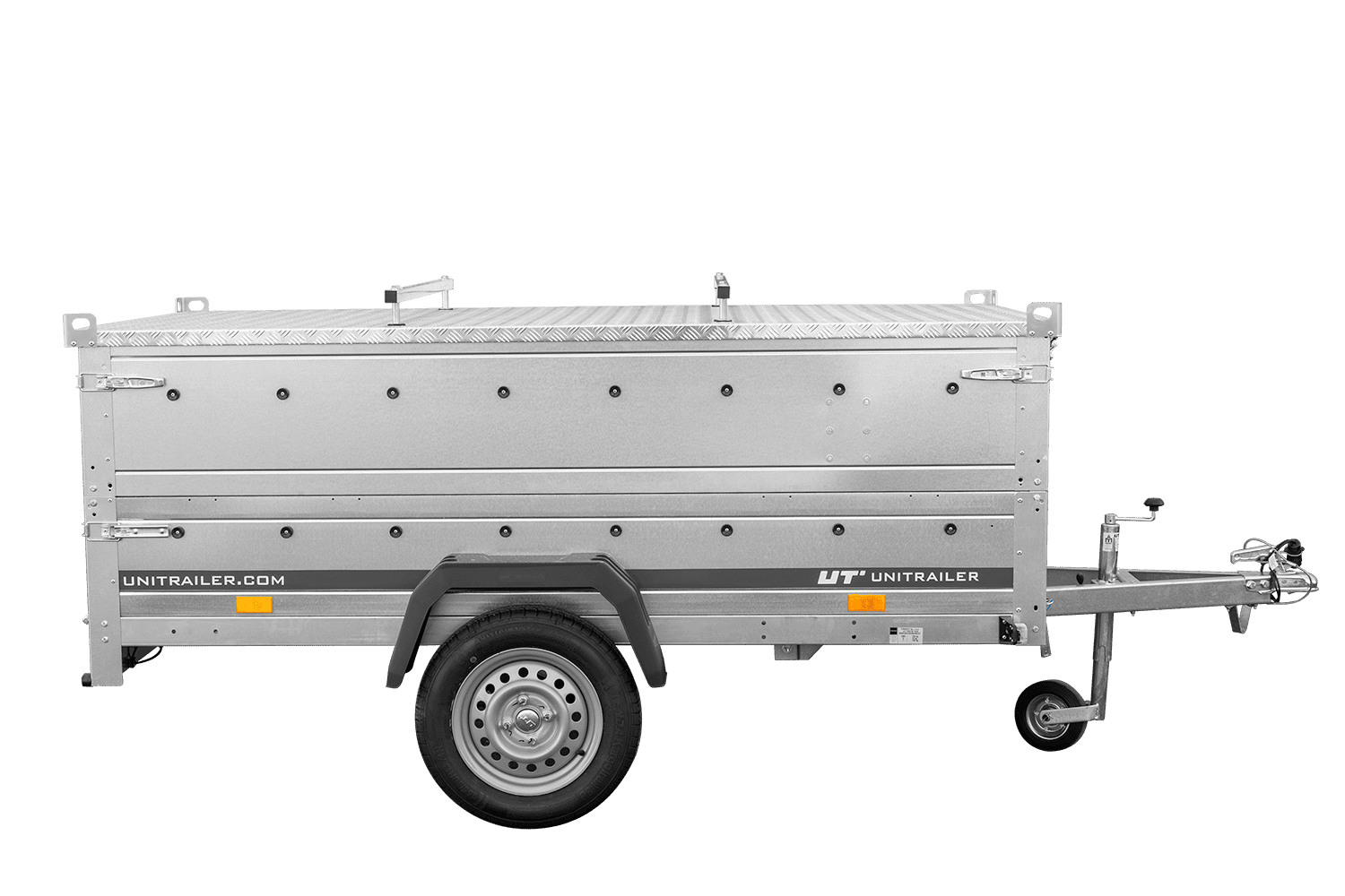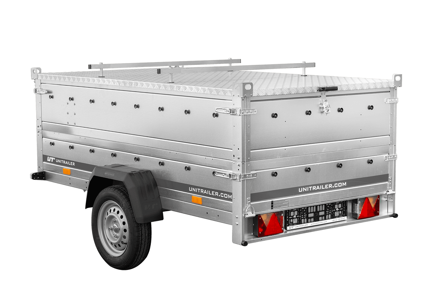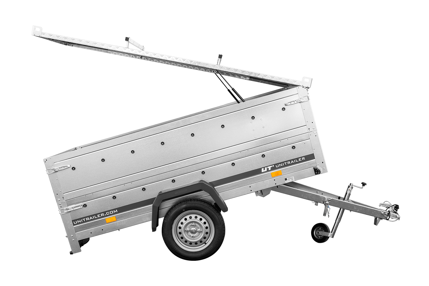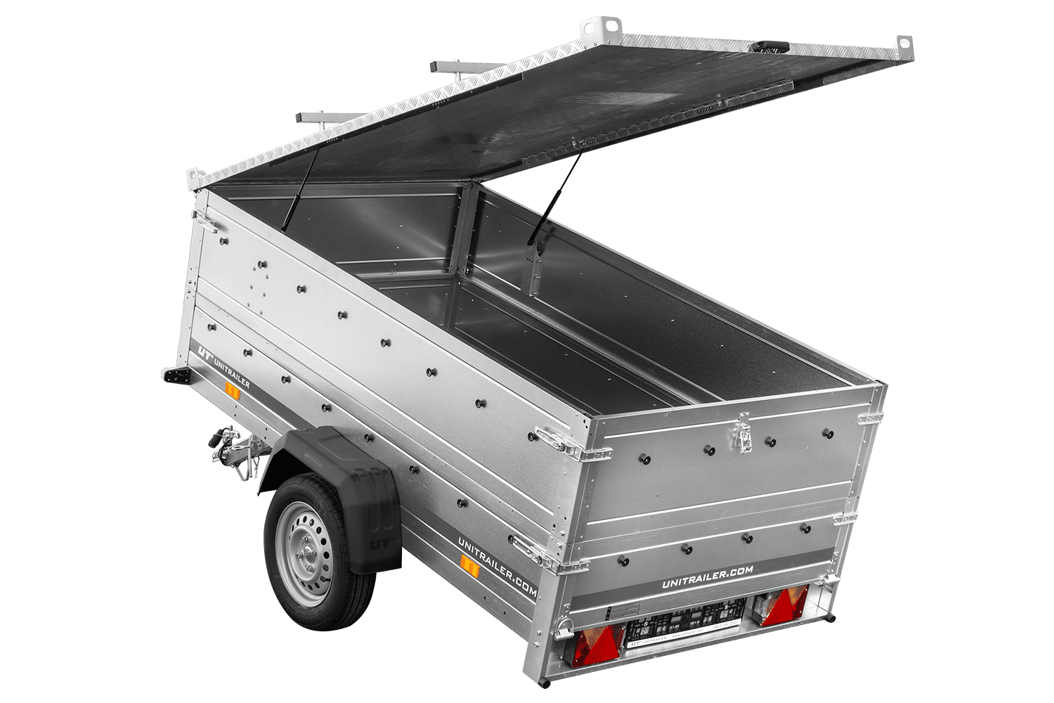 Hliníkový kryt pro přívěs UNITRAILER GARDEN TRAILER 230 KIPP . Lehký odolný kryt o hmotnosti pouze 55,72 kg, který ochrání přepravované zboží. Vybaveno dvojitými výztuhami na bocích, které zaručují pevnou polohu na bocích a navíc vyztužují celou konstrukci. V horní části krytu jsou namontované kolejnice, na které můžete umístit střešní nosič nebo nosič jízdních kol , čímž získáte ještě více prostoru pro přepravu různých druhů předmětů.