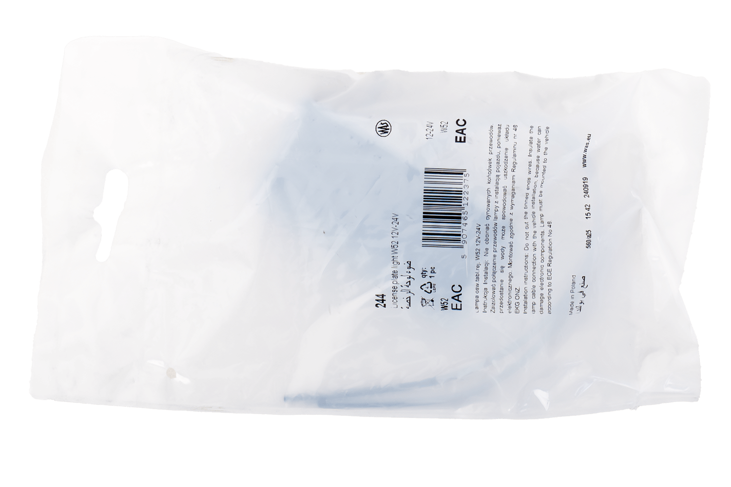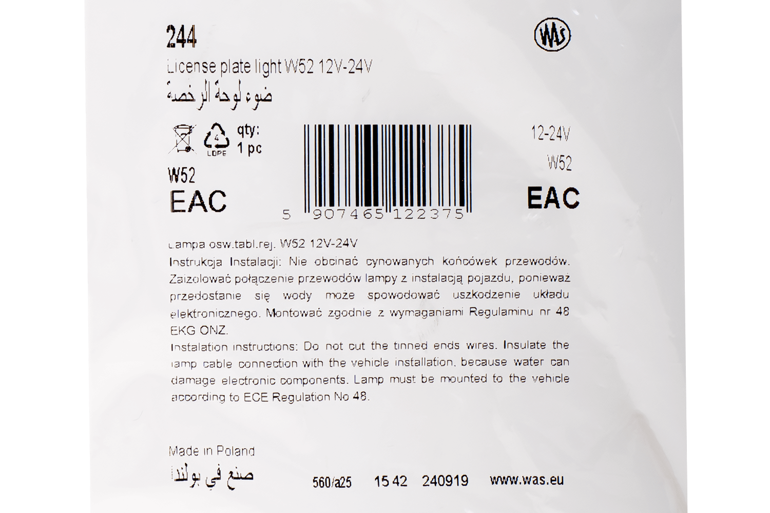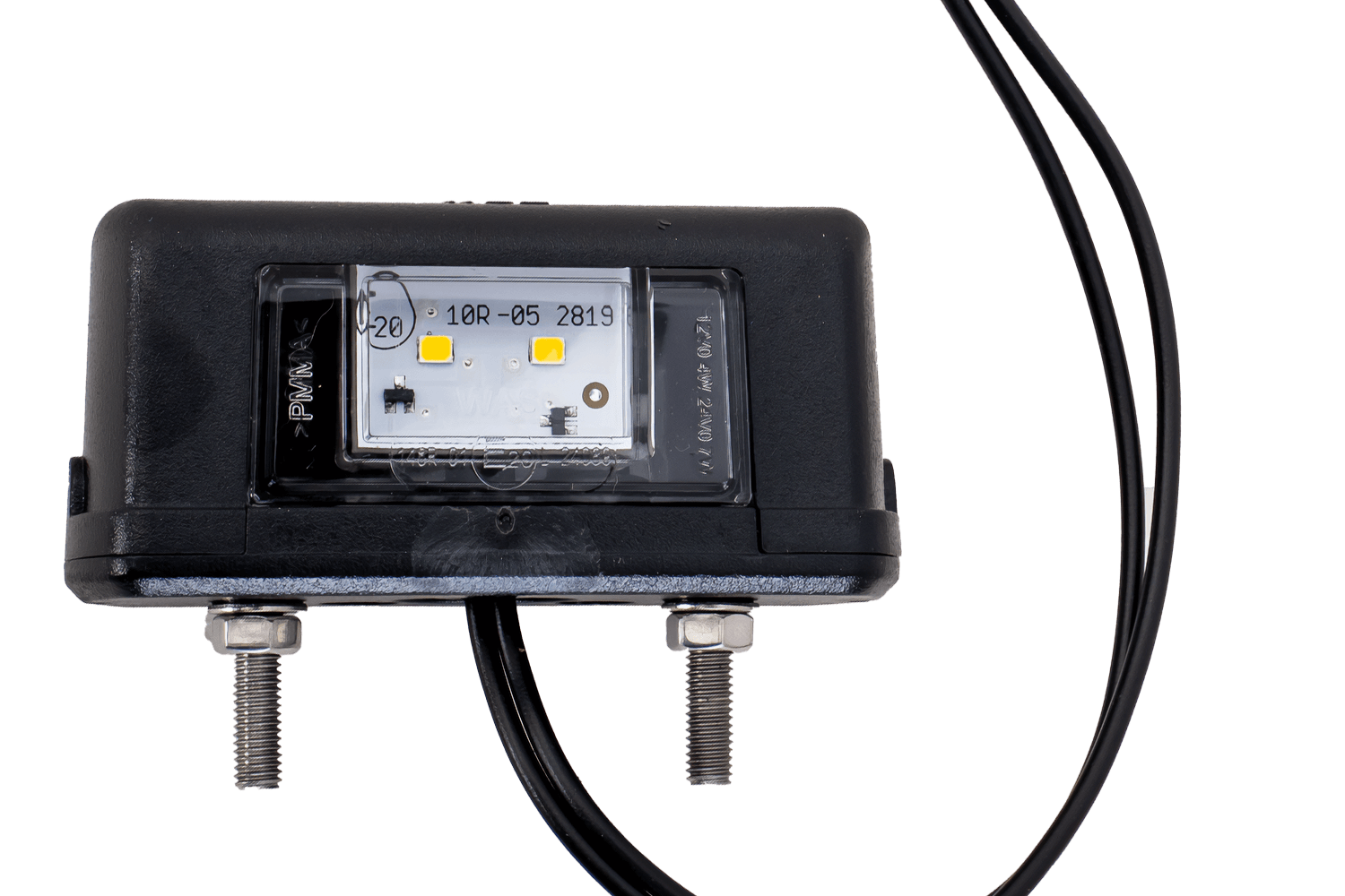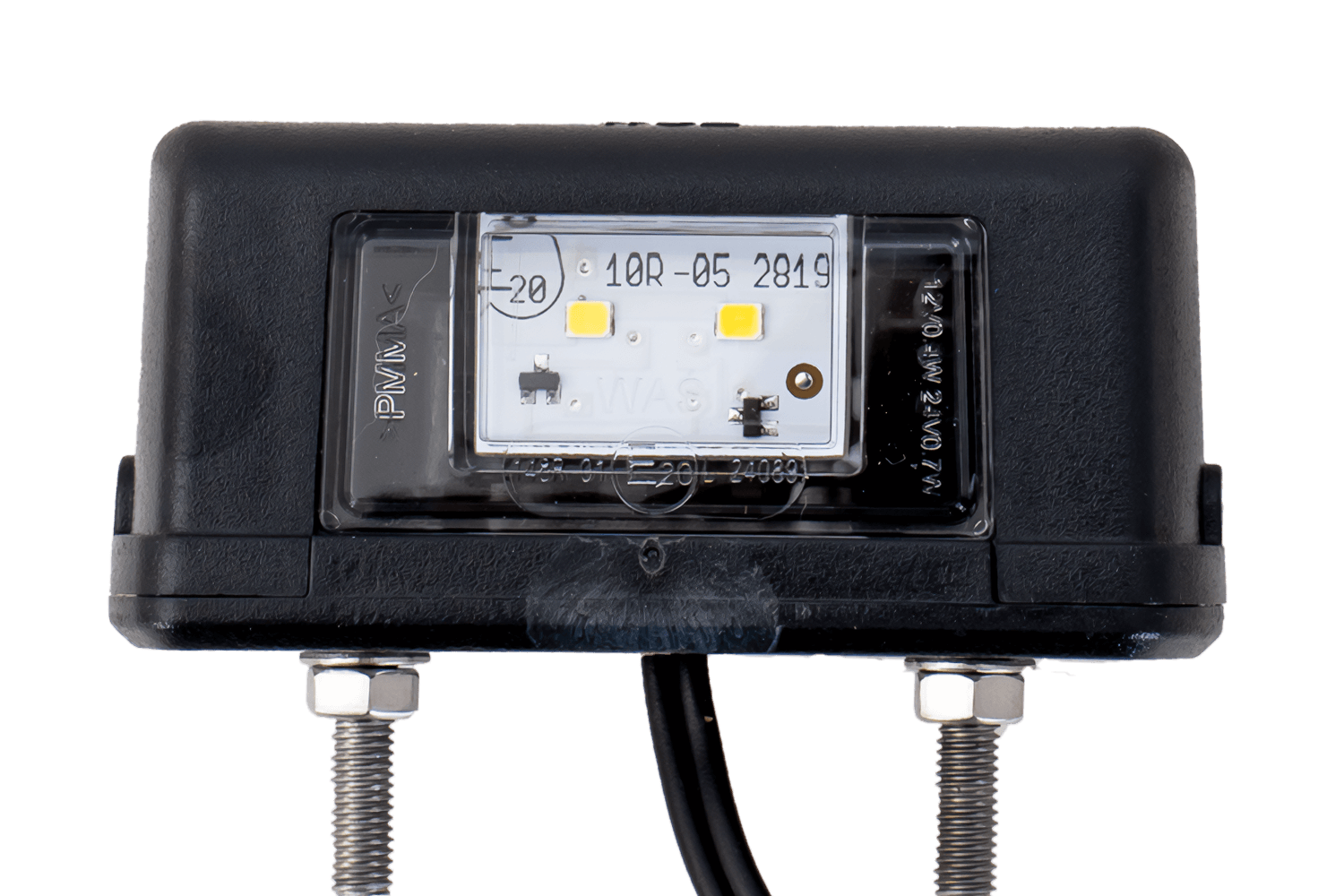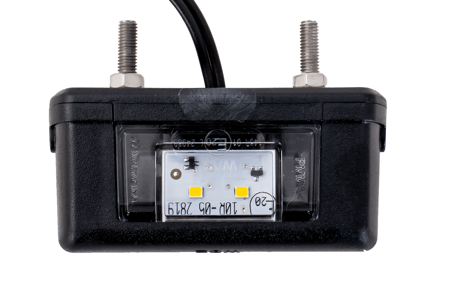 - Toto osvětlení registrační značky WAŚ, vybavené dvěma LED diodami, je určeno pro použití s napětím od 12 V do 24 V. Je vybaveno 20cm stejnosměrným kabelem pro snadnou instalaci a flexibilní připojení k elektrické síti vozidla.
