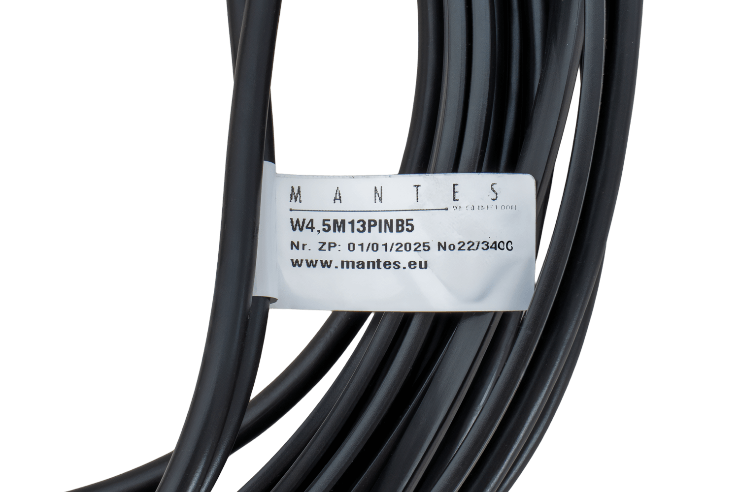 - Elektrický systém MANTES je vybaven 4,5metrovým hlavním kabelem zakončeným 13kolíkovou zástrčkou. Kabelový svazek zajišťuje správný provoz osvětlení v přívěsech nákladních vozidel a plošinových přívěsech, zatímco 5kolíkové bajonetové konektory umožňují ry