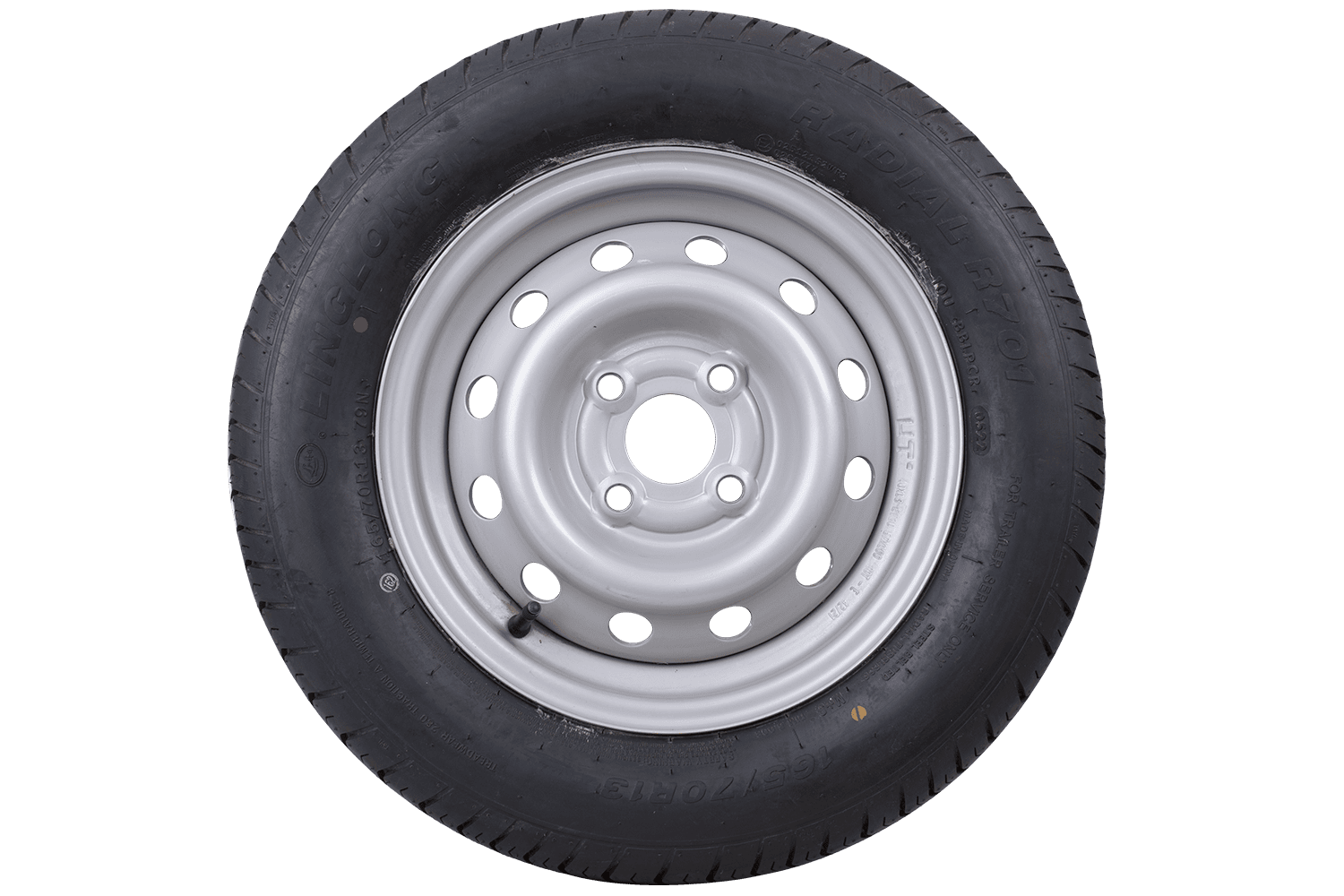 - OUTLET Kolo určené pro lehké přívěsy. Pneumatika LINGLONG 165/70 R13 79N zajišťující bezpečnost a stabilitu při jízdě. UNITRAILER 4Jx13" ocelový ráfek 4x100 ET:30. Maximální nosnost kola je 437 kg.