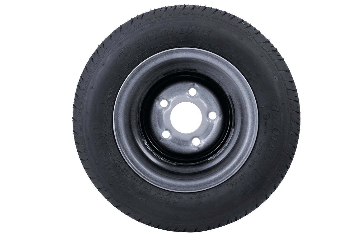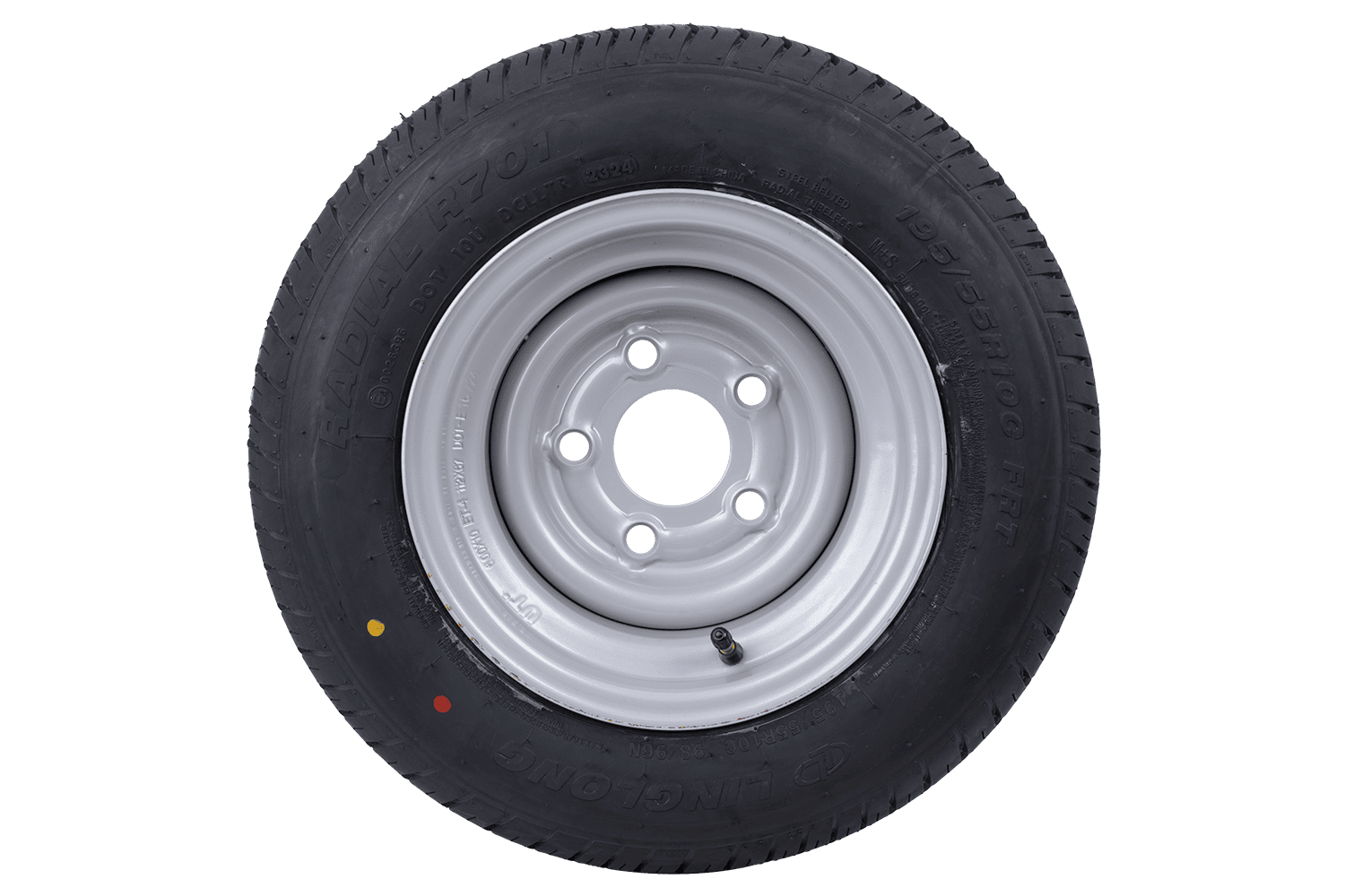 - OUTLET Vyztužené kolo určené pro těžké přívěsy. Pneumatika LINGLONG 195/55 R10C 98/96N zajišťující bezpečnost a stabilitu při jízdě. UNITRAILER 6Jx10" ocelový ráfek 5x112 ET:-4. Maximální nosnost kola je 750 kg.