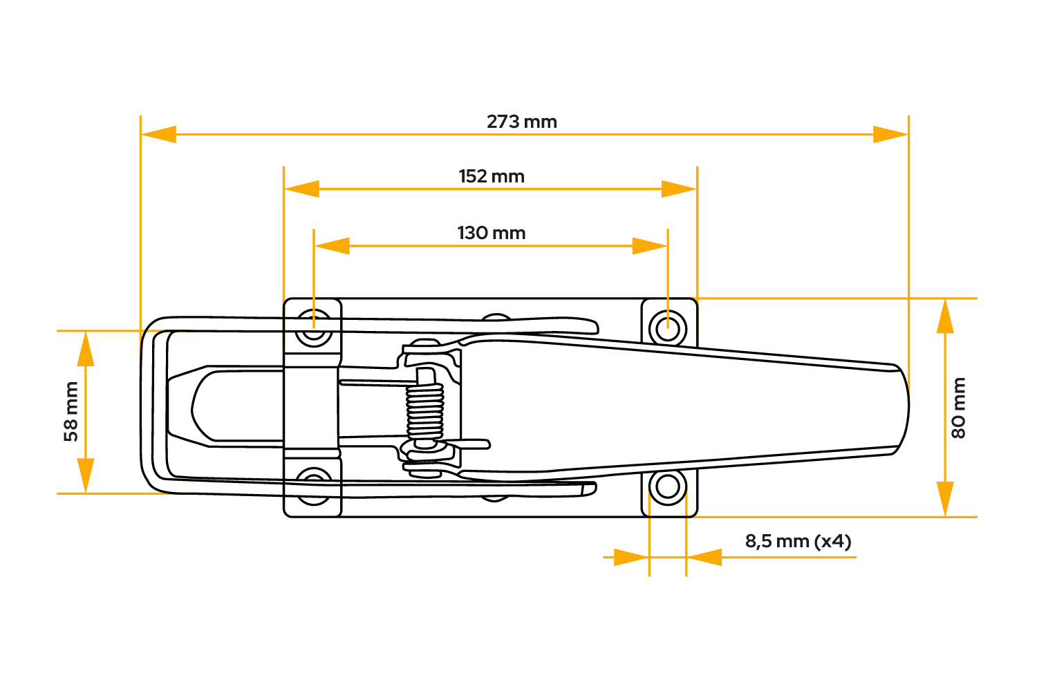 Boční tažné zařízení KNOTT 417177.001 je robustní hardwarový prvek pro přívěsy určený k bezpečnému a trvalému zajištění boků nákladních, zemědělských a užitkových přívěsů. Tažné zařízení je dlouhé 275 mm a má šířku základny 80 mm , což zajišťuje jeho odolnost i při náročném používání .