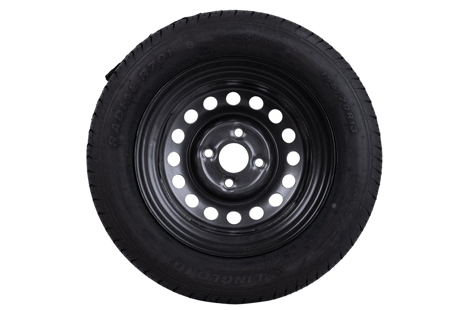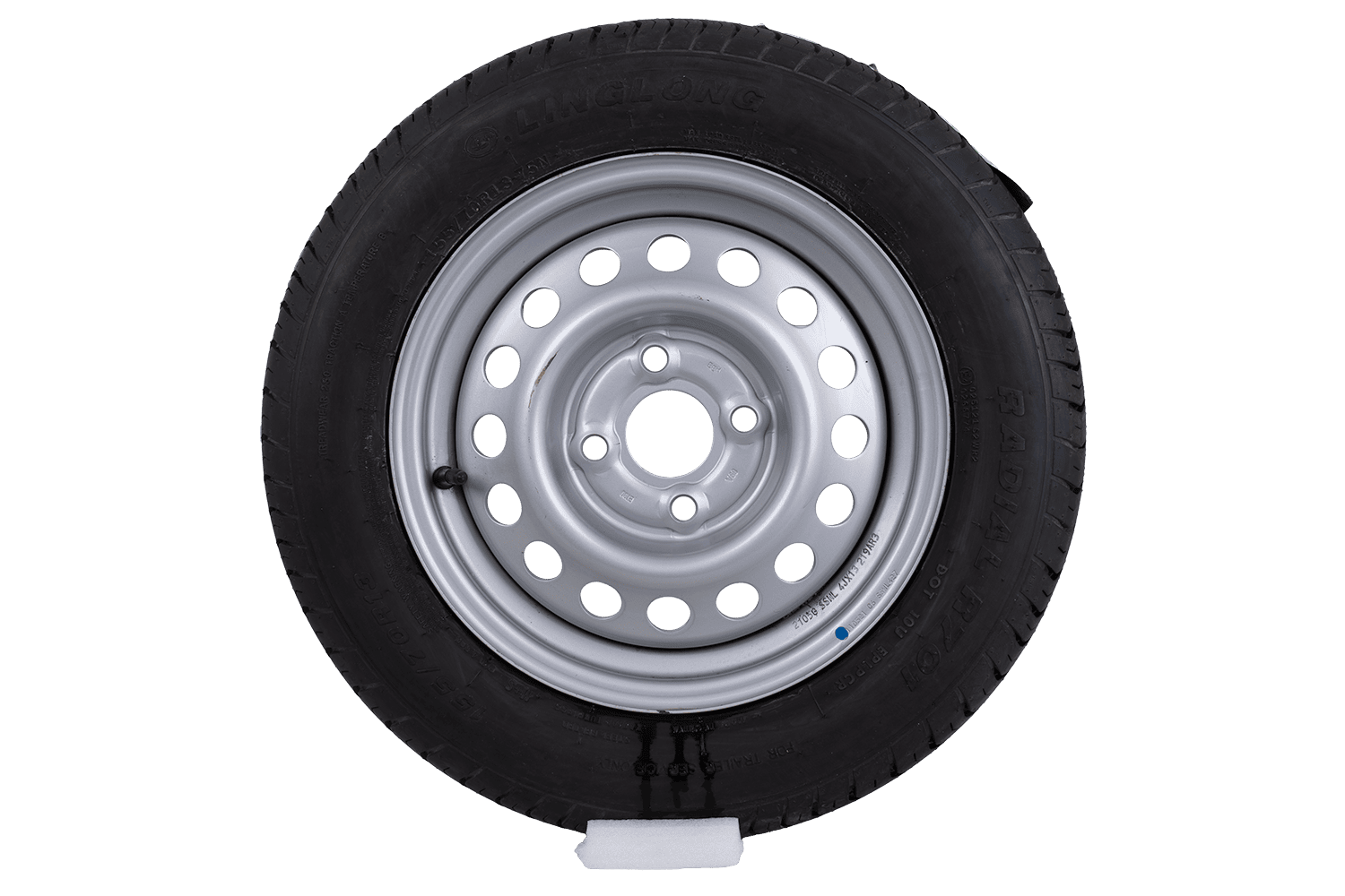 - OUTLET Kolo určené pro lehké přívěsy. Pneumatika LINGLONG 155/70 R13 zajišťující bezpečnost a stabilitu při jízdě. UNITRAILER 4Jx13" ocelový ráfek 4X100 ET:30. Maximální nosnost kola je 387 kg.
