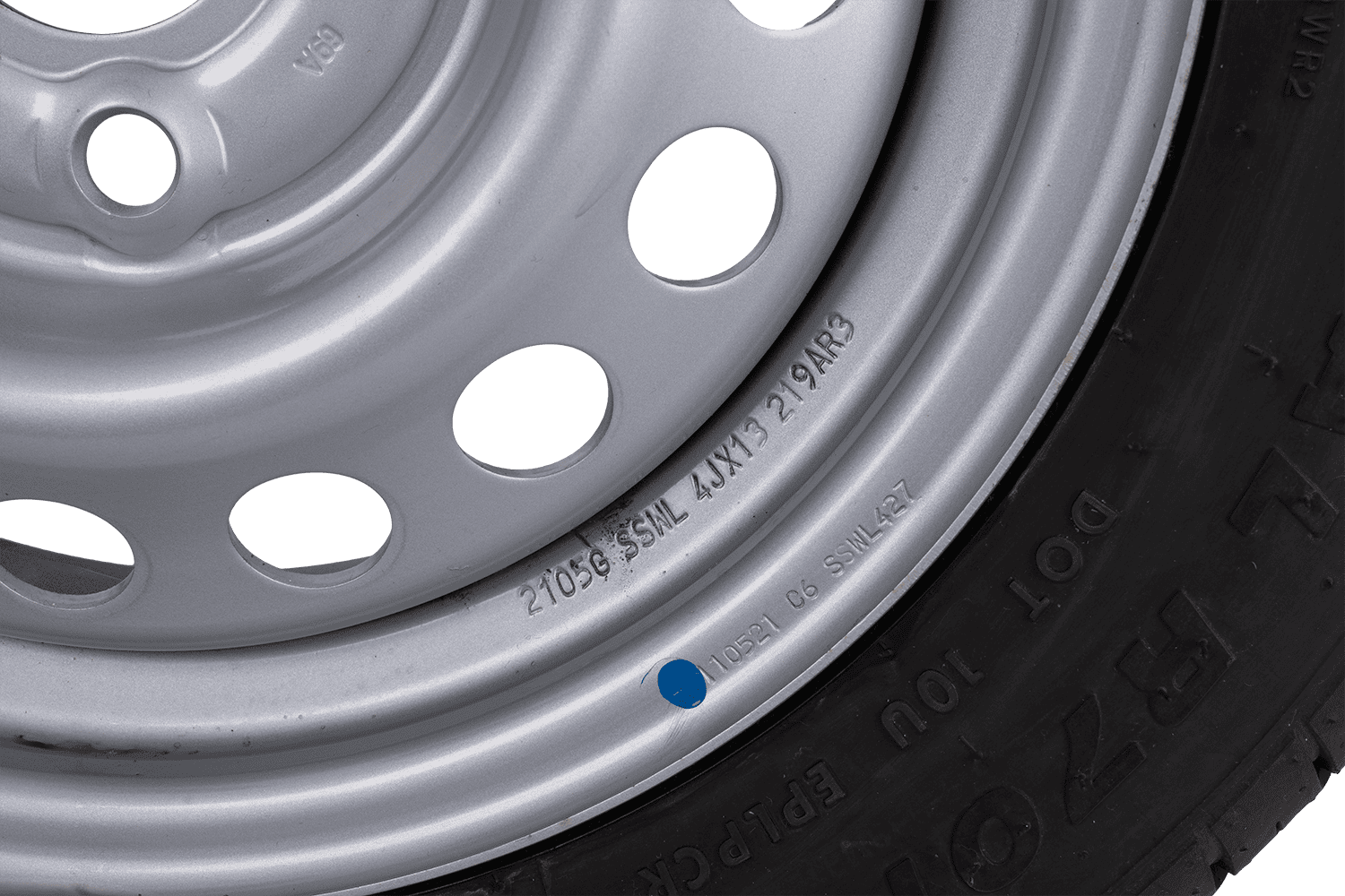 Outletový produkt - pneumatika vyrobená v roce 2023. Ráfek má poškození různého stupně a místa, jako je poškození laku, změna barvy, škrábance, drobné rezavé skvrny nebo promáčkliny.