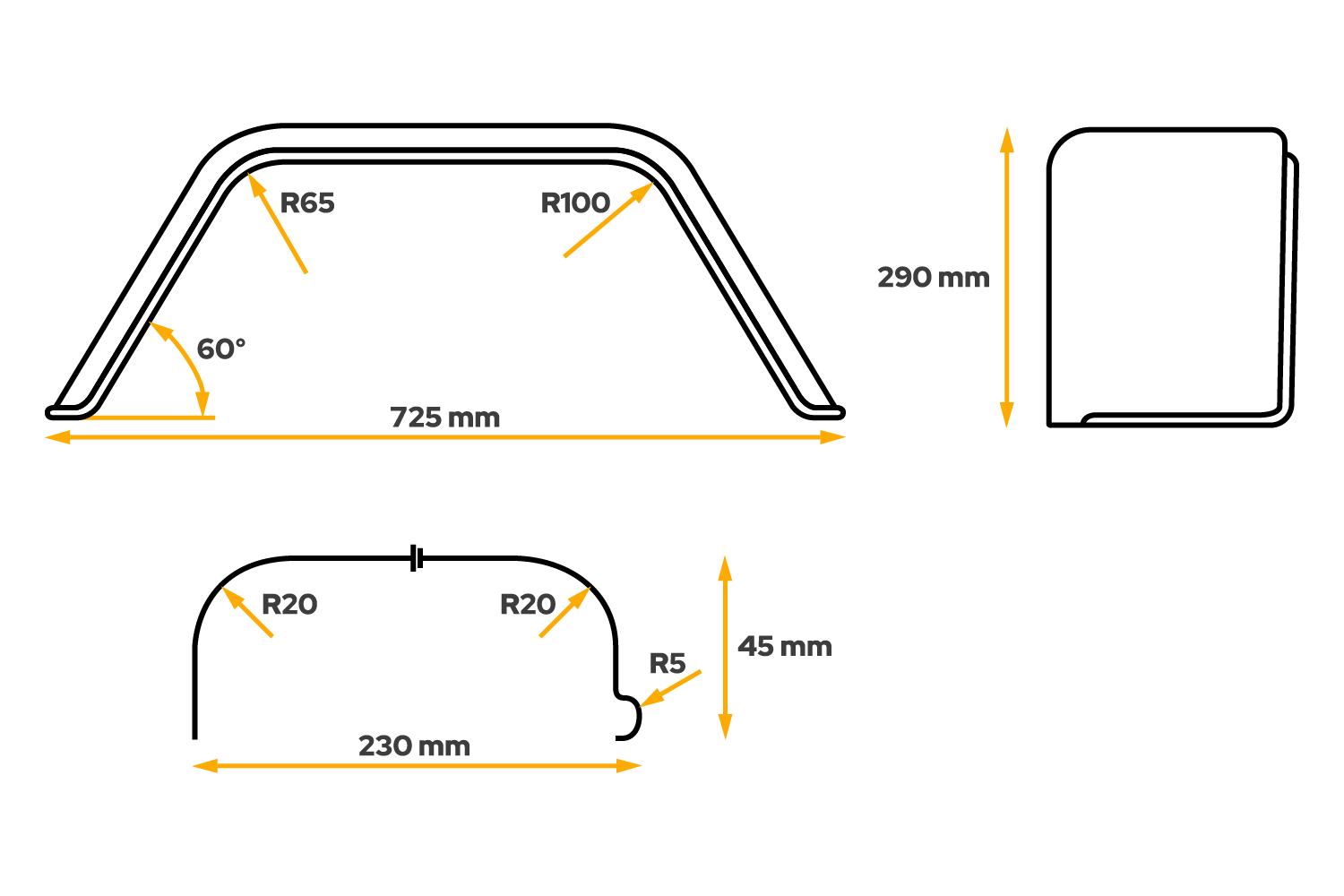 Blatník přívěsu 13" podběh kola CHORUS 725/230 mm