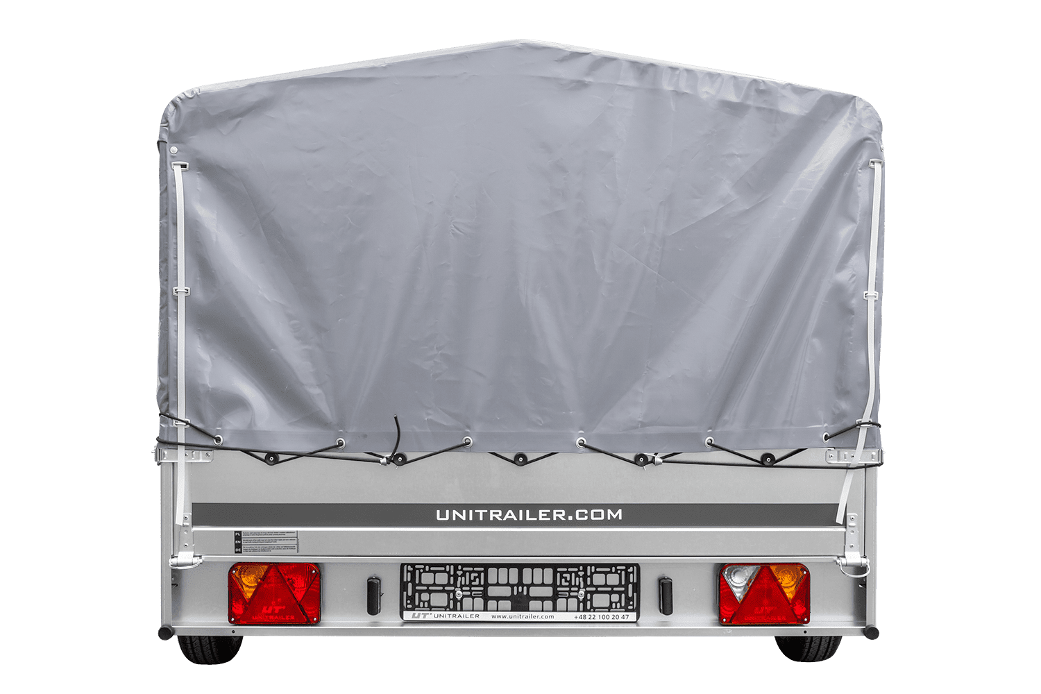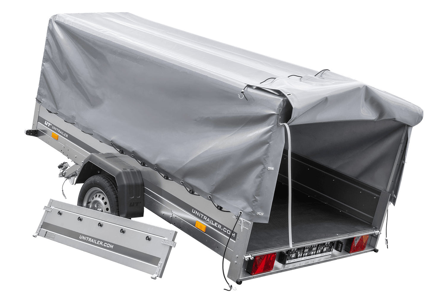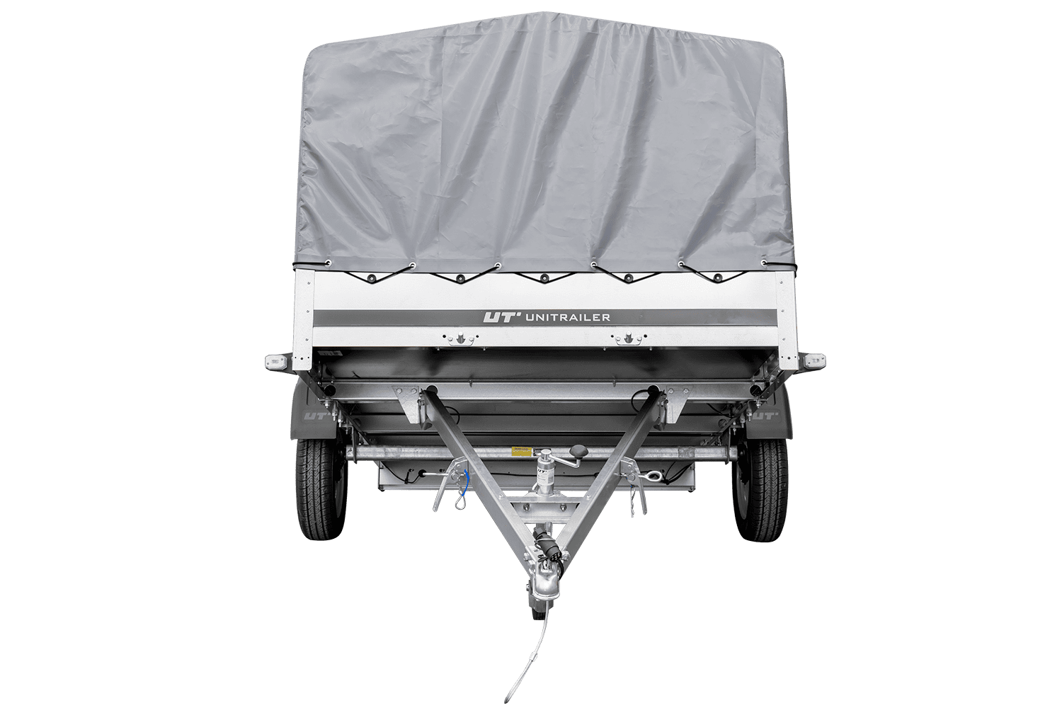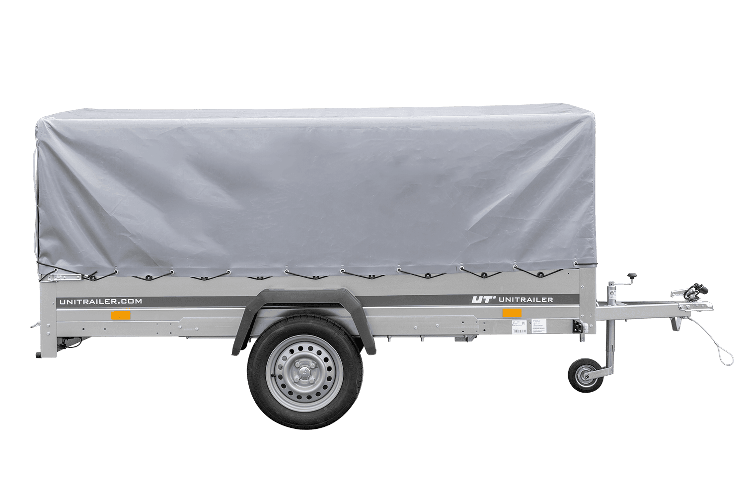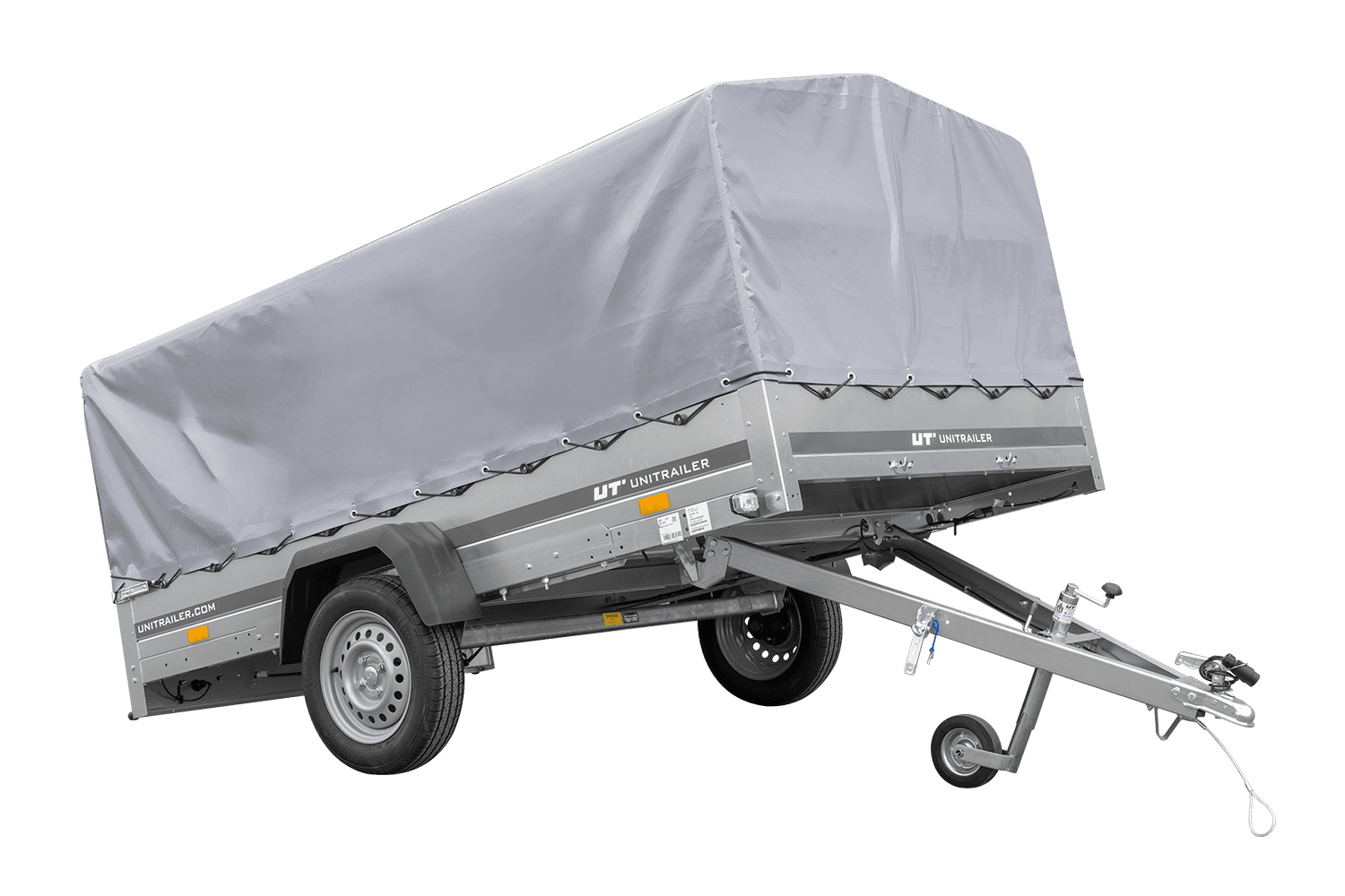 - UNITRAILER Garden 265 Kipp přívěs za auto, šířka 150 cm, s rámem H-800 a šedou plachtou. Široký přívěs znamená větší přepravní možnosti pro vás nebo vaši firmu.