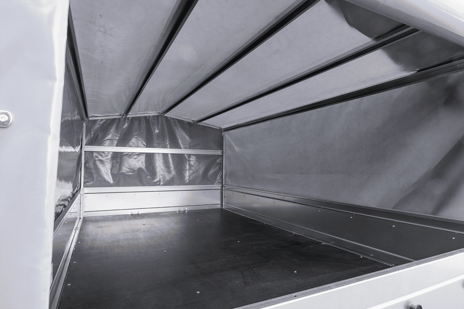 Přívěs Garden Trailer 265 KIPP s rámem H-800 a šedou plachtou