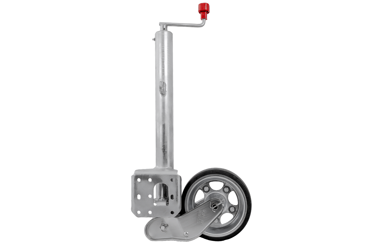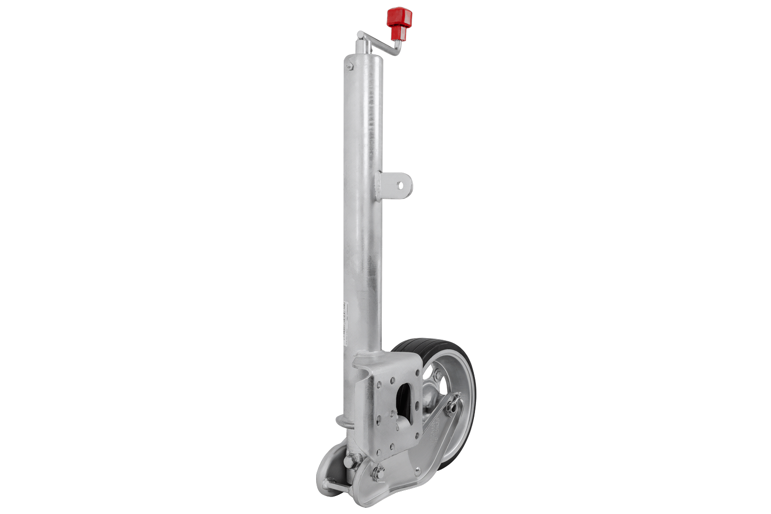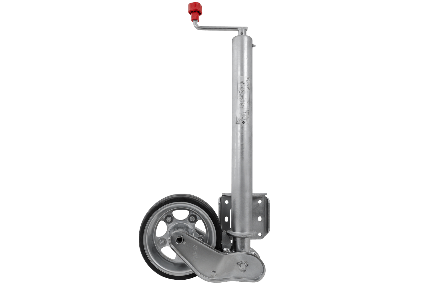 Kolo je žárově zinkované, což ho účinně chrání před korozí a nepříznivými povětrnostními podmínkami. Je vybaveno klikou s axiálním ložiskem , díky čemuž je provoz plynulejší a méně náročný. Mechanismus zvedání kola je plně automatický a vestavěná maznice zajišťuje volnost pohybu a delší životnost. Tento model je prodloužená verze s prodlouženým nastavovacím zdvihem , což usnadňuje přesné nastavení výšky. Deska opěrného kola je navíc hluboce svařena, což zvětšuje prostor pro otáčení opěrné patky během zvedání a zajišťuje větší pohodlí při používání.