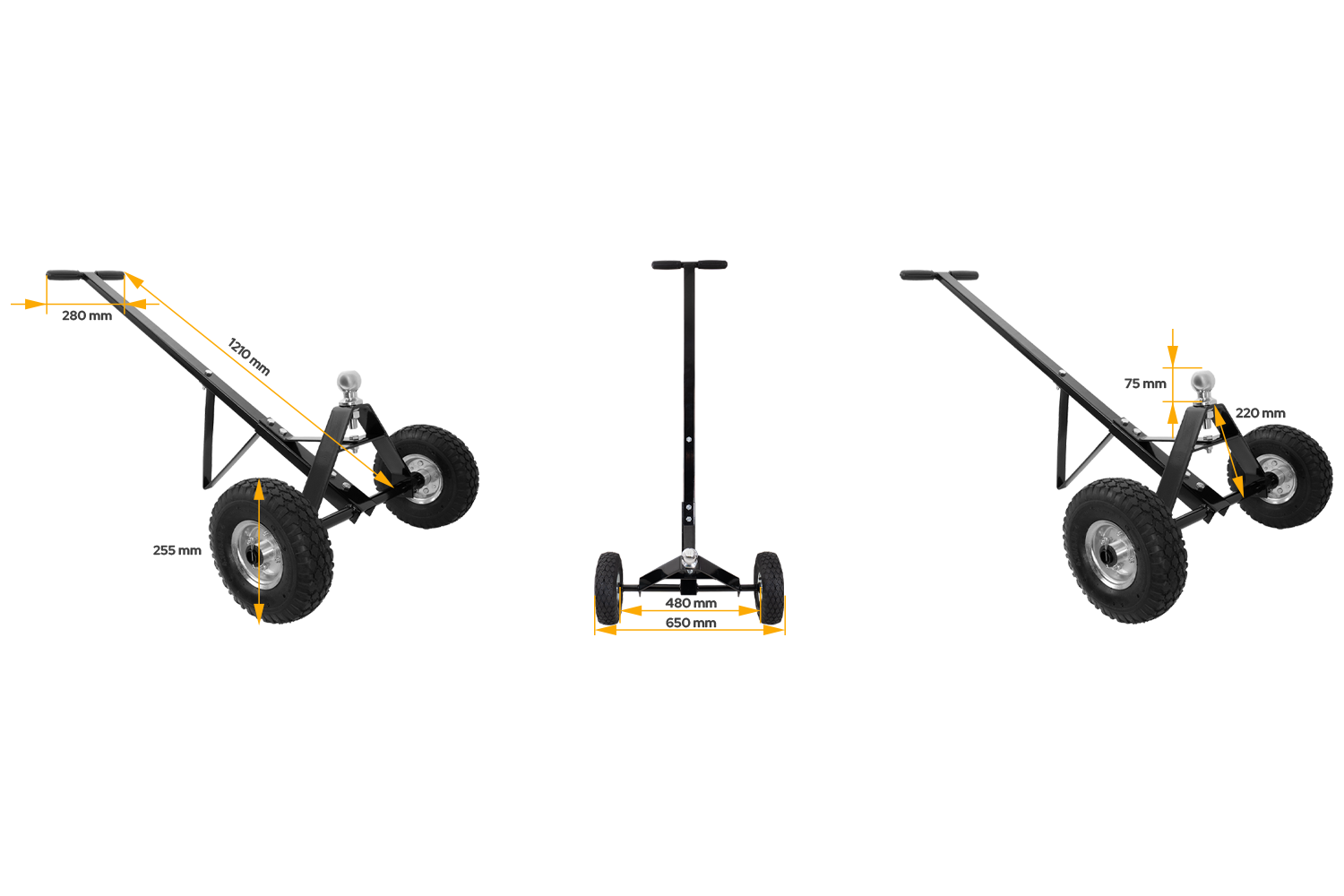 Manipulační vozík KNOTT 420993.001 má maximální povolené zatížení 272 kg , což ho činí vhodným pro manipulaci s většinou lehkých přívěsů a karavanů. Odtahovka je vybavena tažnou koulí o průměru 50 mm a pneumatickými koly o průměru 10 palců pro stabilitu a snadnou ovladatelnost.
