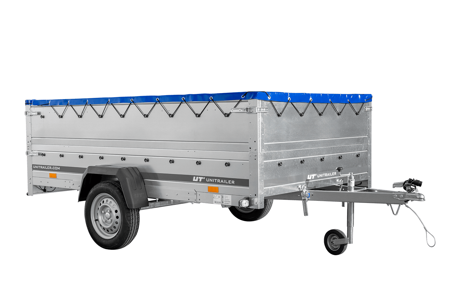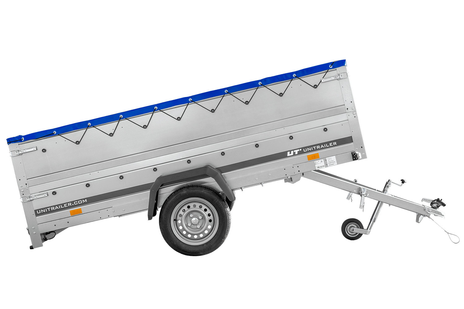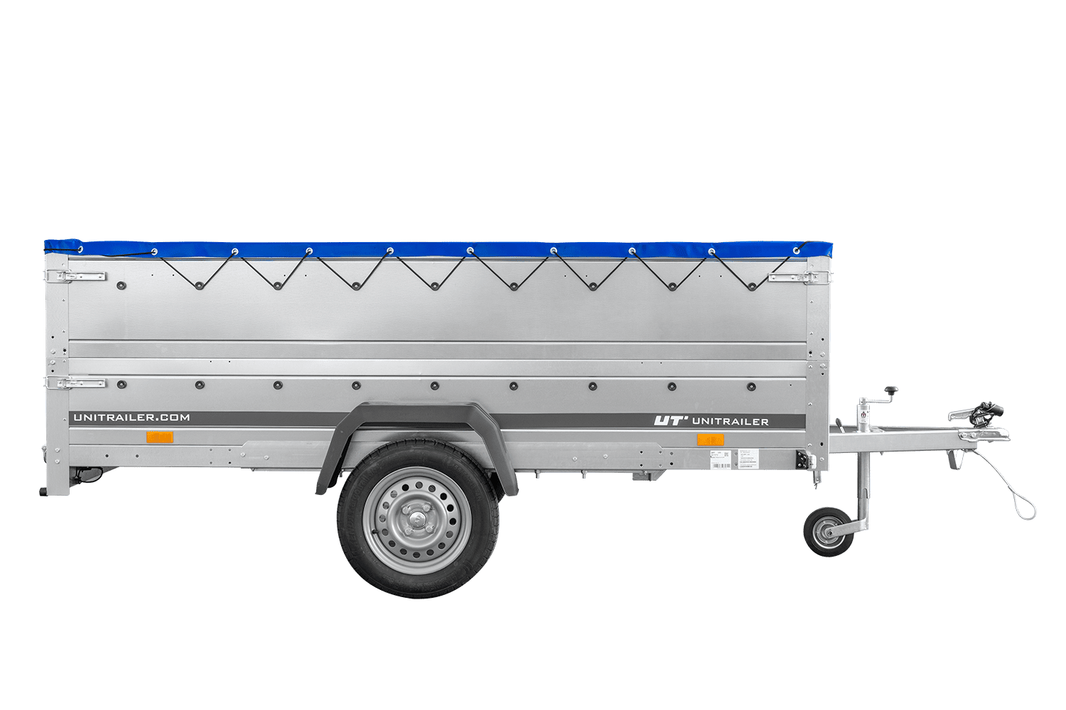 - UNITRAILER Garden 265 Kipp přívěs za auto, šířka 150 cm, kompletní s BIS bočnicemi, rámem H-0 a modrou plachtou. Široký přívěs znamená větší přepravní možnosti pro vás nebo vaši firmu.