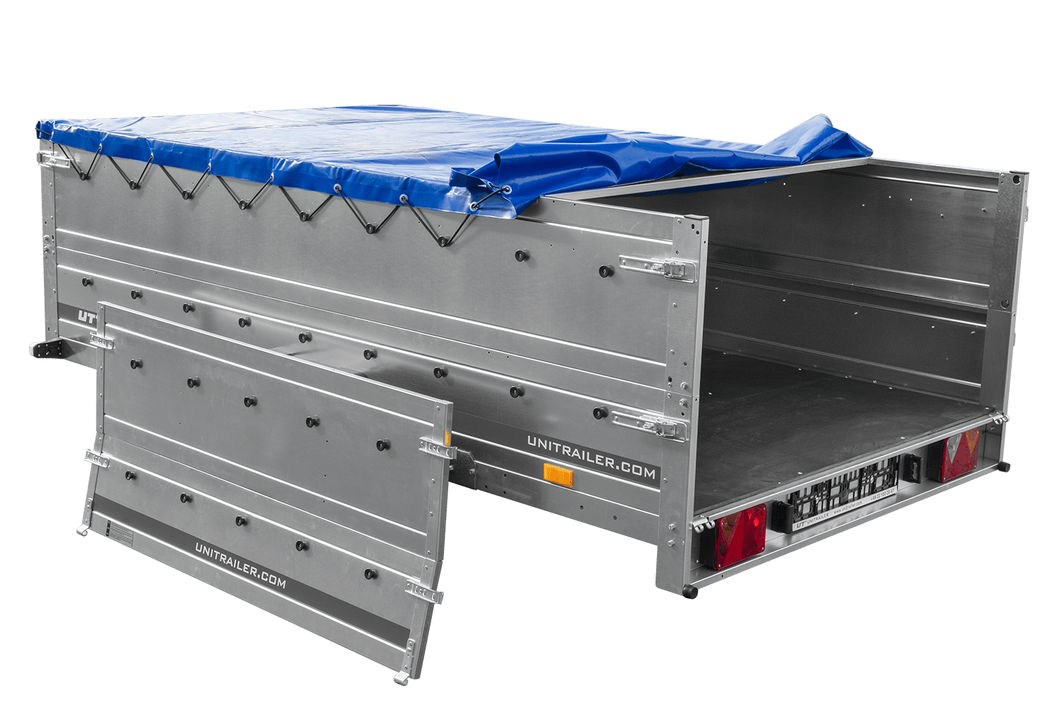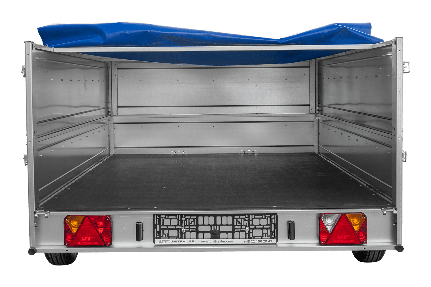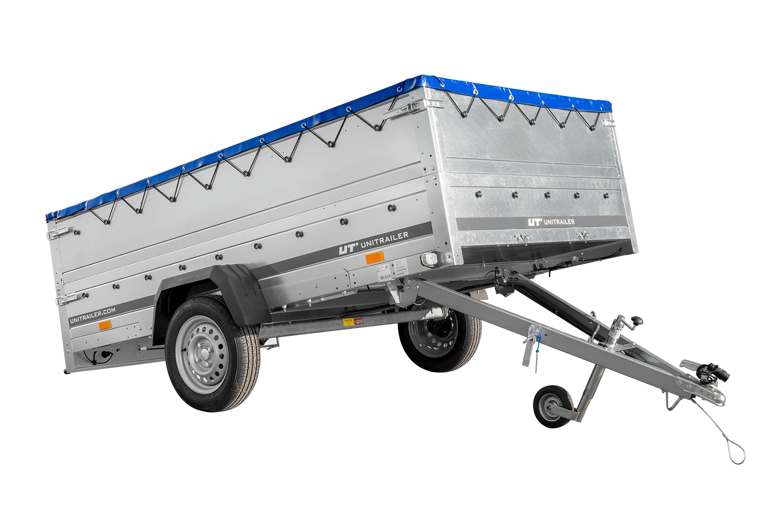 - UNITRAILER Garden 265 Kipp přívěs za auto, šířka 150 cm, kompletní s BIS bočnicemi, rámem H-0 a modrou plachtou. Široký přívěs znamená větší přepravní možnosti pro vás nebo vaši firmu.