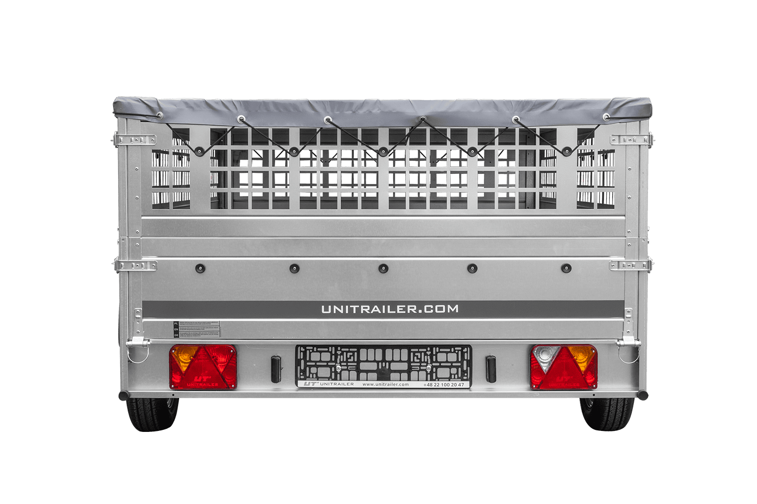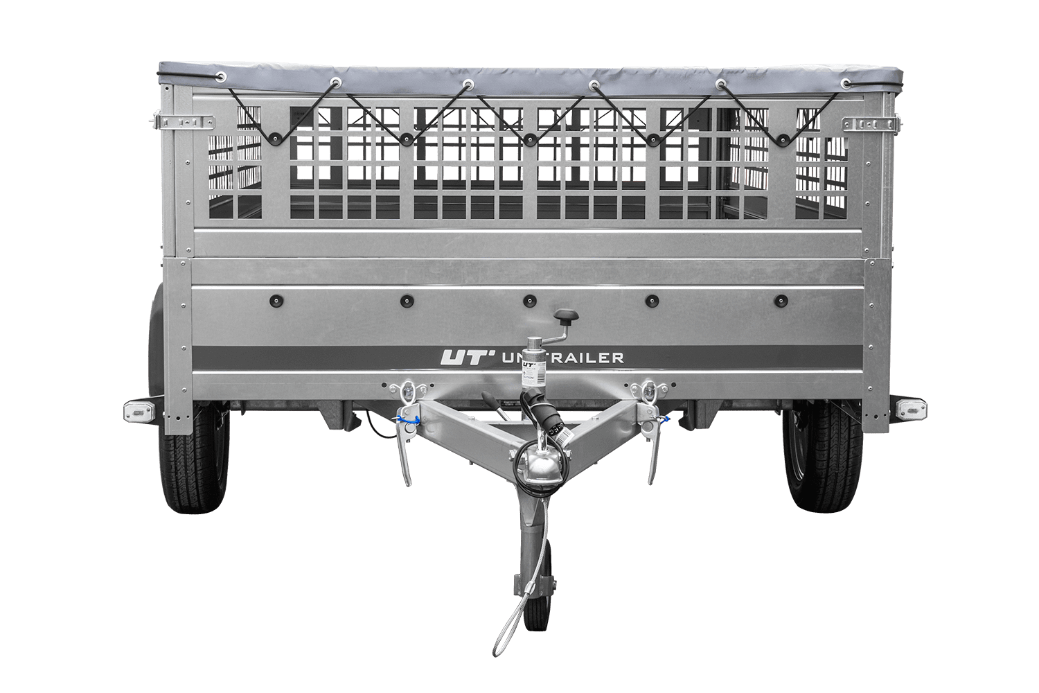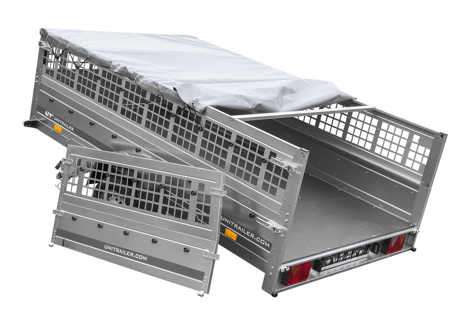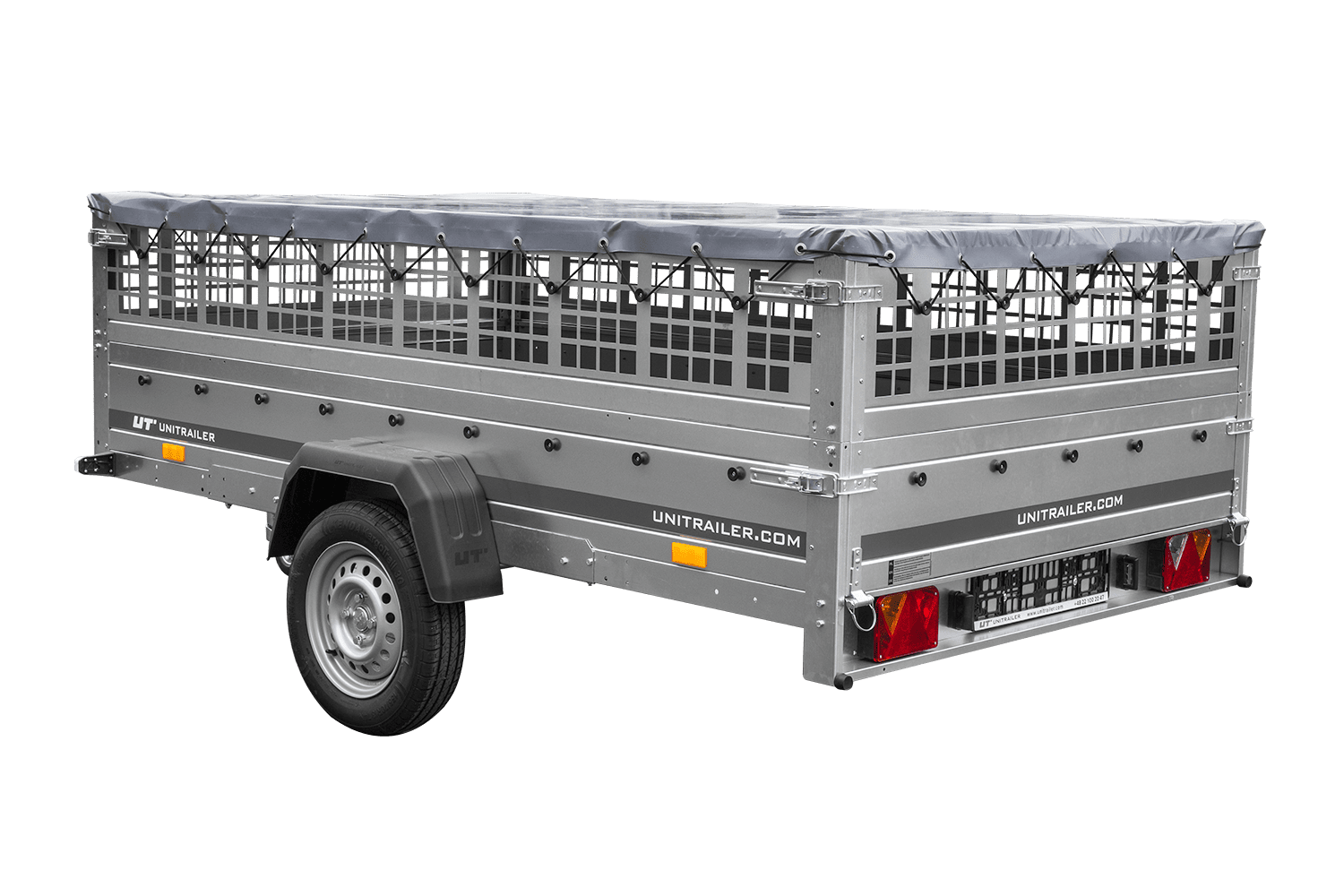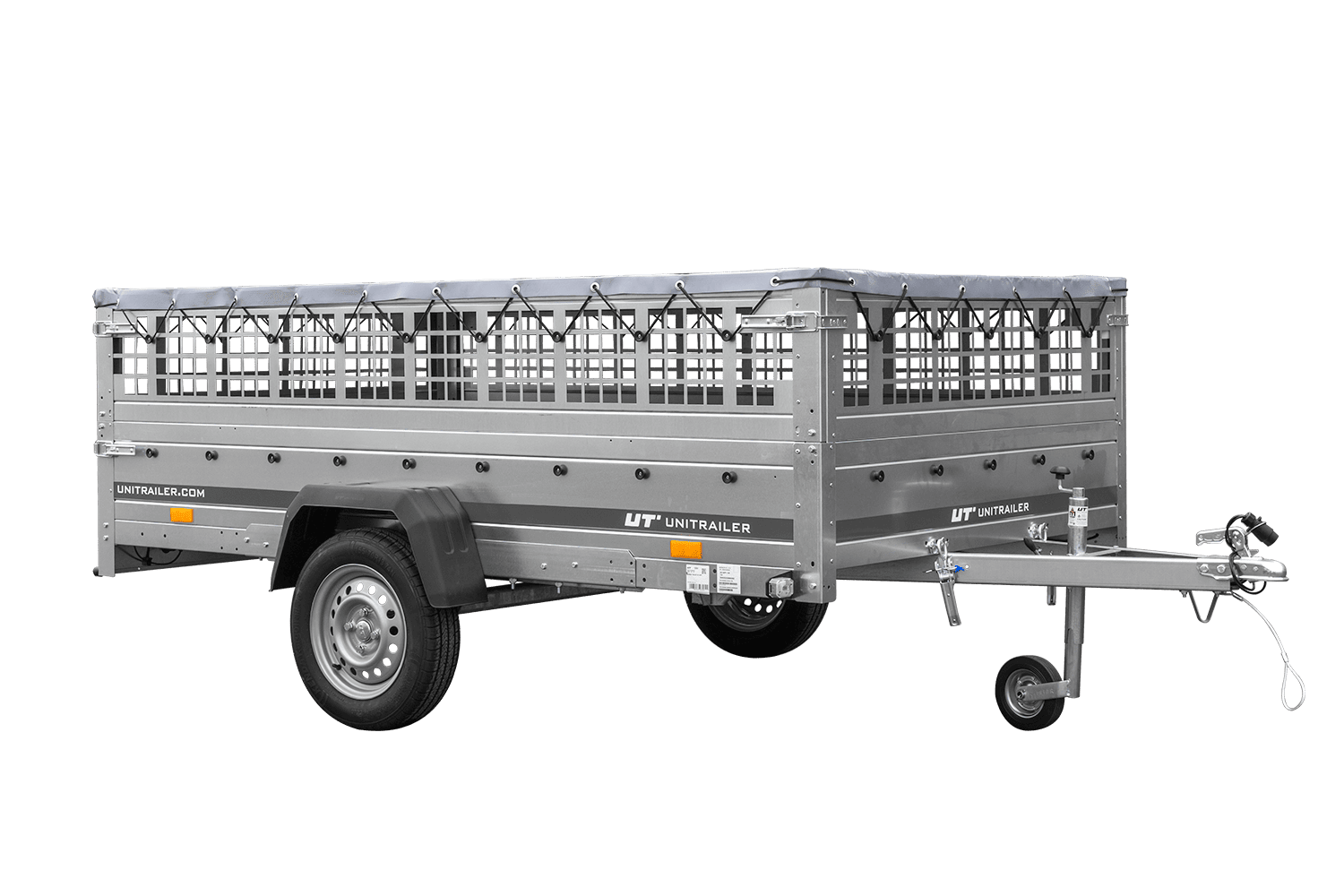 • UNITRAILER Garden 265 Kipp přívěs za auto, šířka 150 cm, kompletní s bočnicemi z pletiva, rámem H-0 a šedým krytem. Přívěs, díky kterému bude vaše zboží chráněno před náročnými povětrnostními podmínkami.