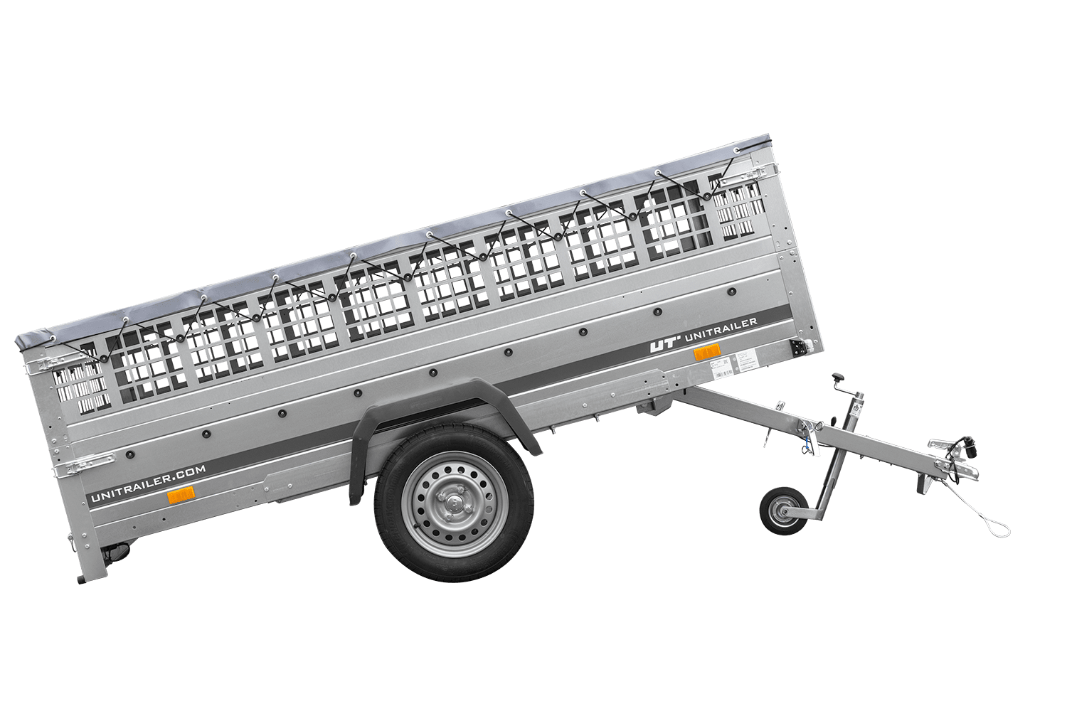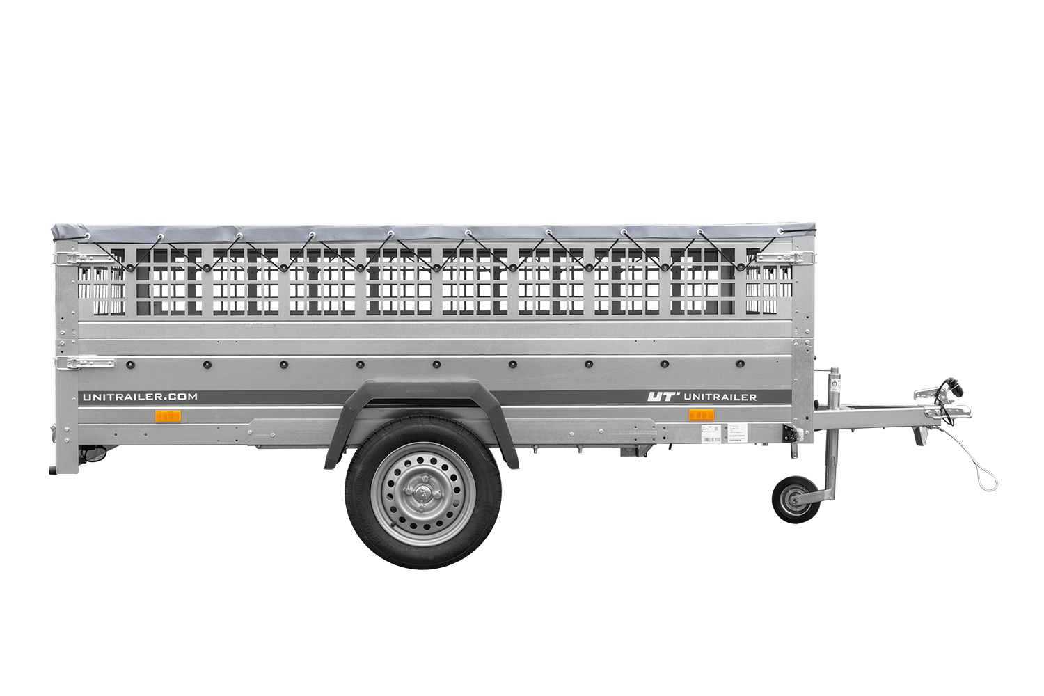Lehký přívěs 264x150 UNITRAILER GARDEN 265 KIPP s bočnicemi z pletiva, rámem H-0 a šedým krytem