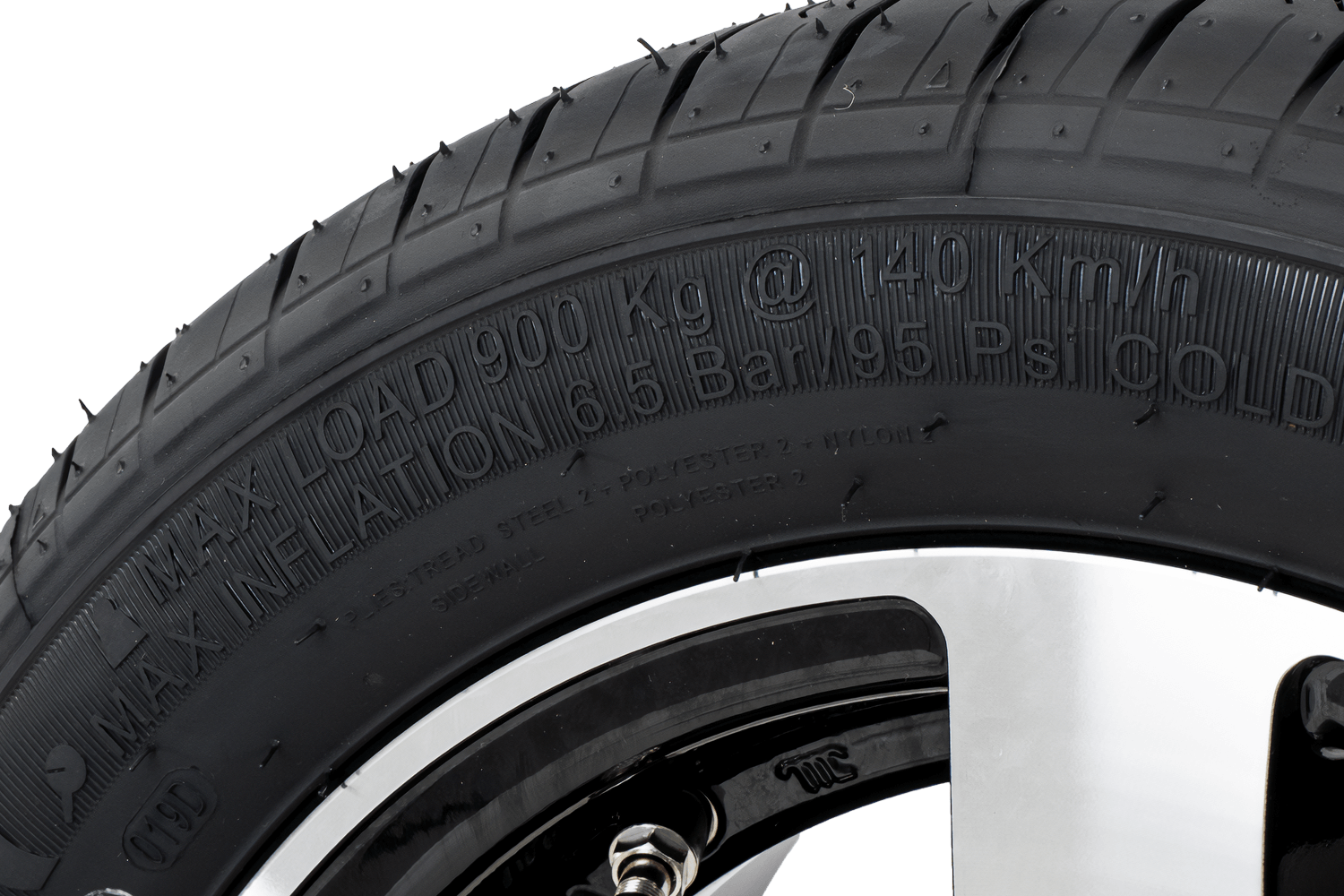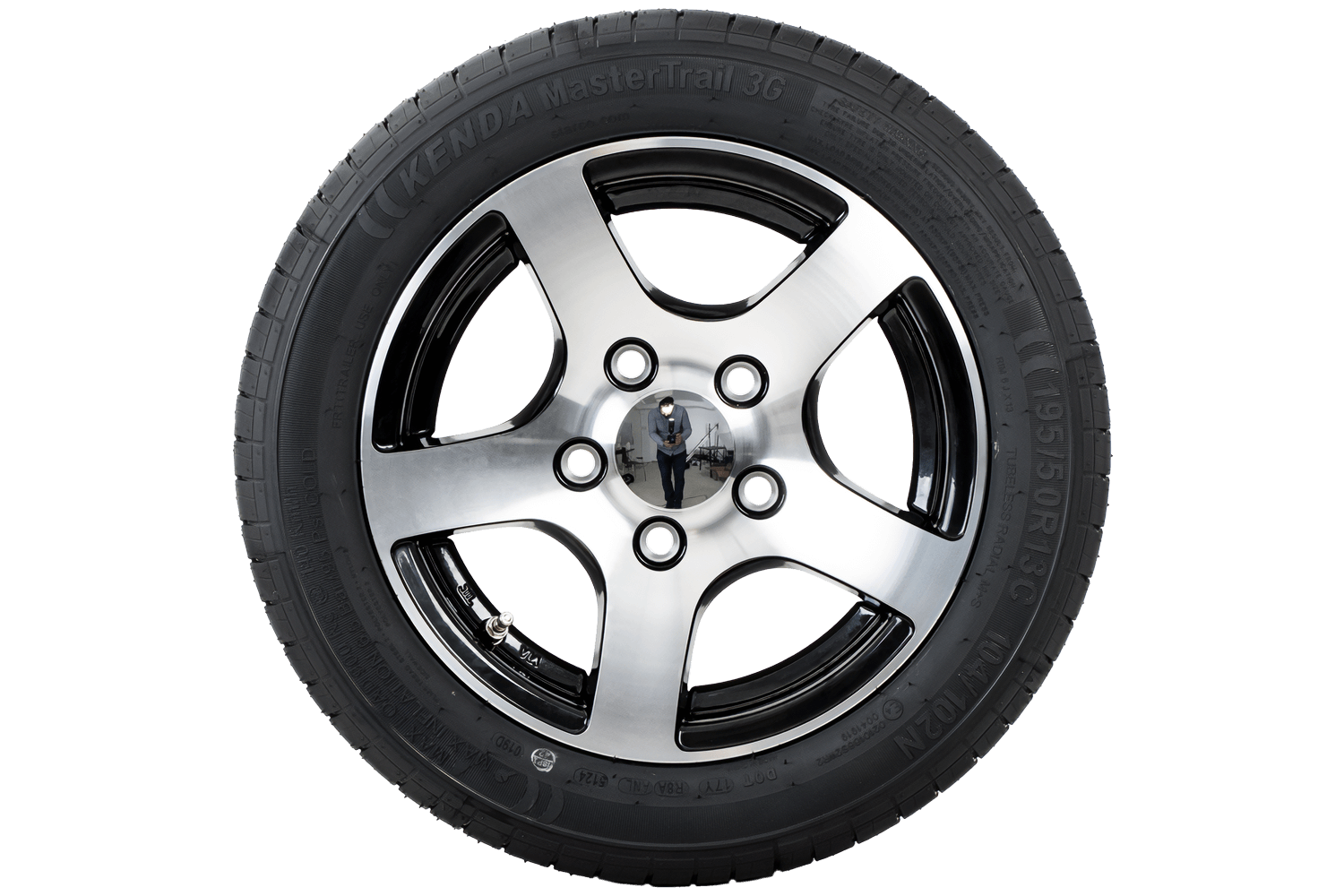 - Zesílené kolo určené pro těžké přívěsy. Pneumatika KENDA 195/50 R13C zajišťující bezpečnost a stabilitu při jízdě. STARCO hliníkový ráfek 6Jx13"H2 5X112 ET:30 leštěný s černou povrchovou úpravou. Maximální nosnost kola je 900 kg.