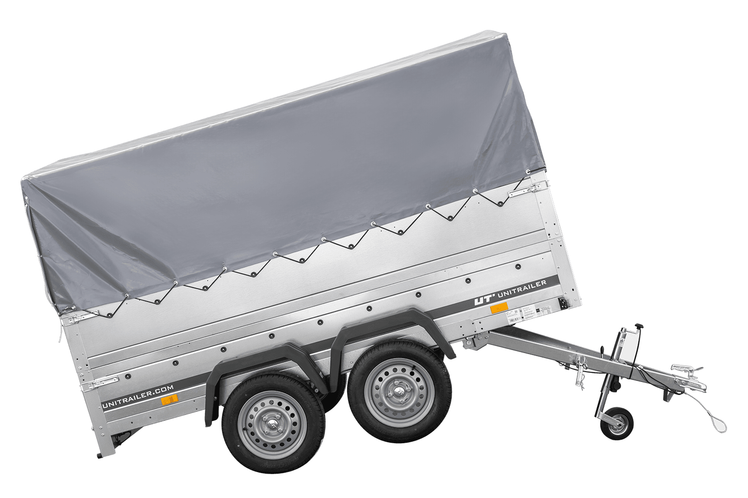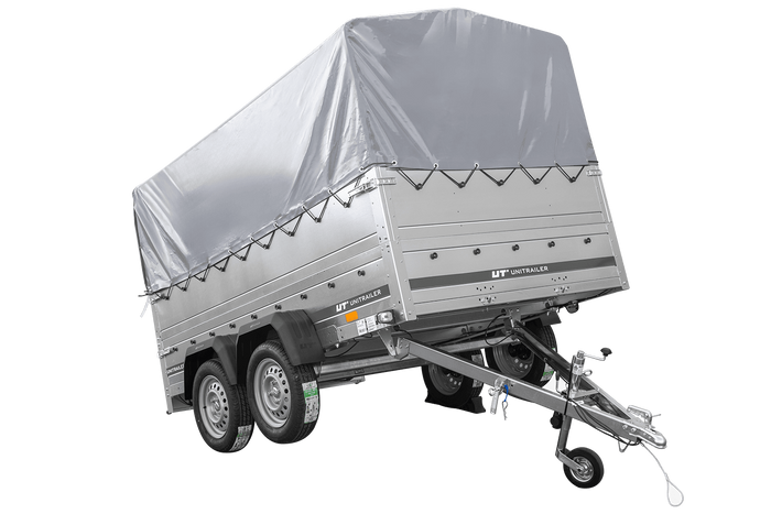 Přívěs UNITRAILER GARDEN 265/2 KIPP s bočnicemi BIS, rámem H-0 a šedou plachtou