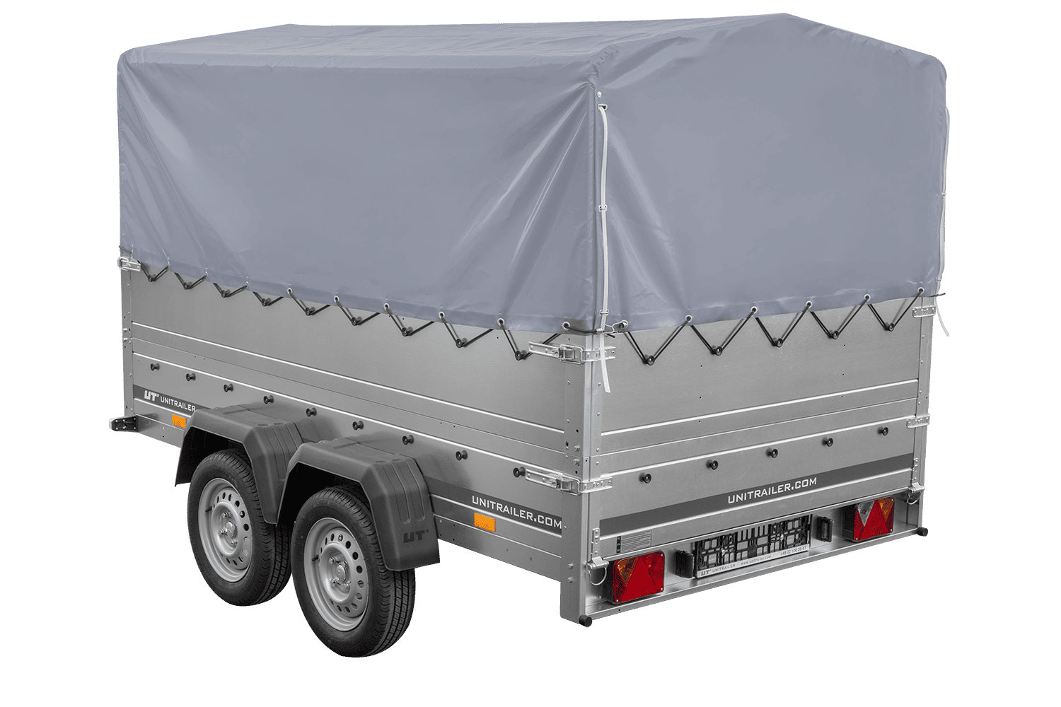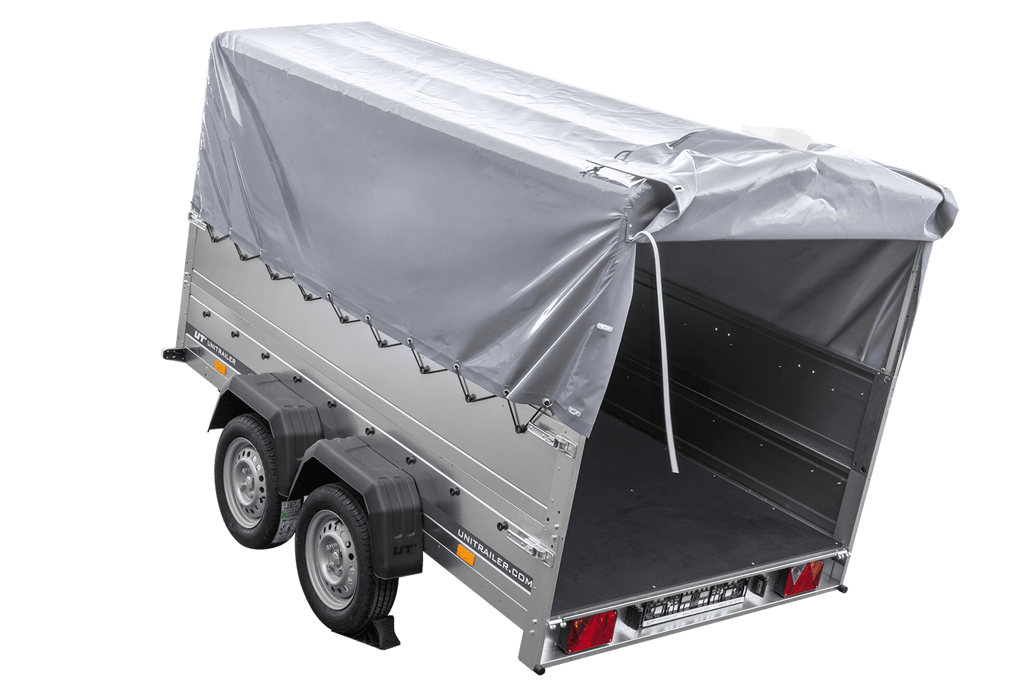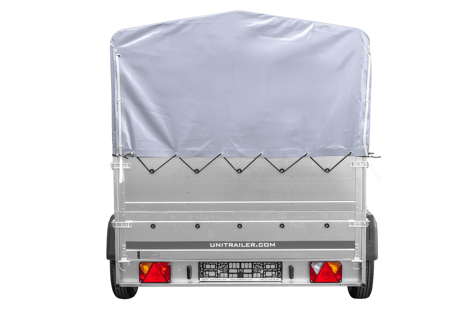 Tento přívěs s přídavnými bočními stěnami, 80 cm vysokým rámem a šedou plachtou je přívěs pro osobní automobil s maximální celkovou hmotností 750 kg . Pro snadné nakládání a vykládání má přívěs otevírací nebo odnímatelnou zadní stranu. Rám je v nejvyšším bodě vysoký 80 cm a má sedlovou střechu pro lepší odvod vody a sněhu během jízdy. Je vyroben z velmi pevných ocelových nosníků chráněných proti korozi pozinkováním. Rám je sestaven pomocí šroubů, které jsou součástí sady. Celá sestava vytváří pevný a stabilní rám pro plachtu. Plachta je vyrobena z silného, nepromokavého materiálu s gramáží 630 g/m² a ani dlouhodobý déšť nezpůsobí její prosakování. Součástí sady je také elastická šňůra s háčky, která umožňuje rychlé napnutí. Plachta je vybavena otevírací zadní částí , která usnadňuje nakládání a vykládání zboží z přívěsu. Pro přístup k nákladu nemusíte sundávat celou plachtu. Jednoduše zvedněte dva popruhy, které zajišťují zadní část plachty, abyste zabránili nechtěnému zvedání během jízdy nebo parkování. Pak jej jednoduše srolujte a umístěte na horní nosník rámu. To vám umožní snadný přístup do interiéru přívěsu, aniž byste museli otevírat zadní panel. Součástí dodávky je opěrné kolečko, které umožňuje pohodlné manévrování s přívěsem, když není připojen k vozidlu.