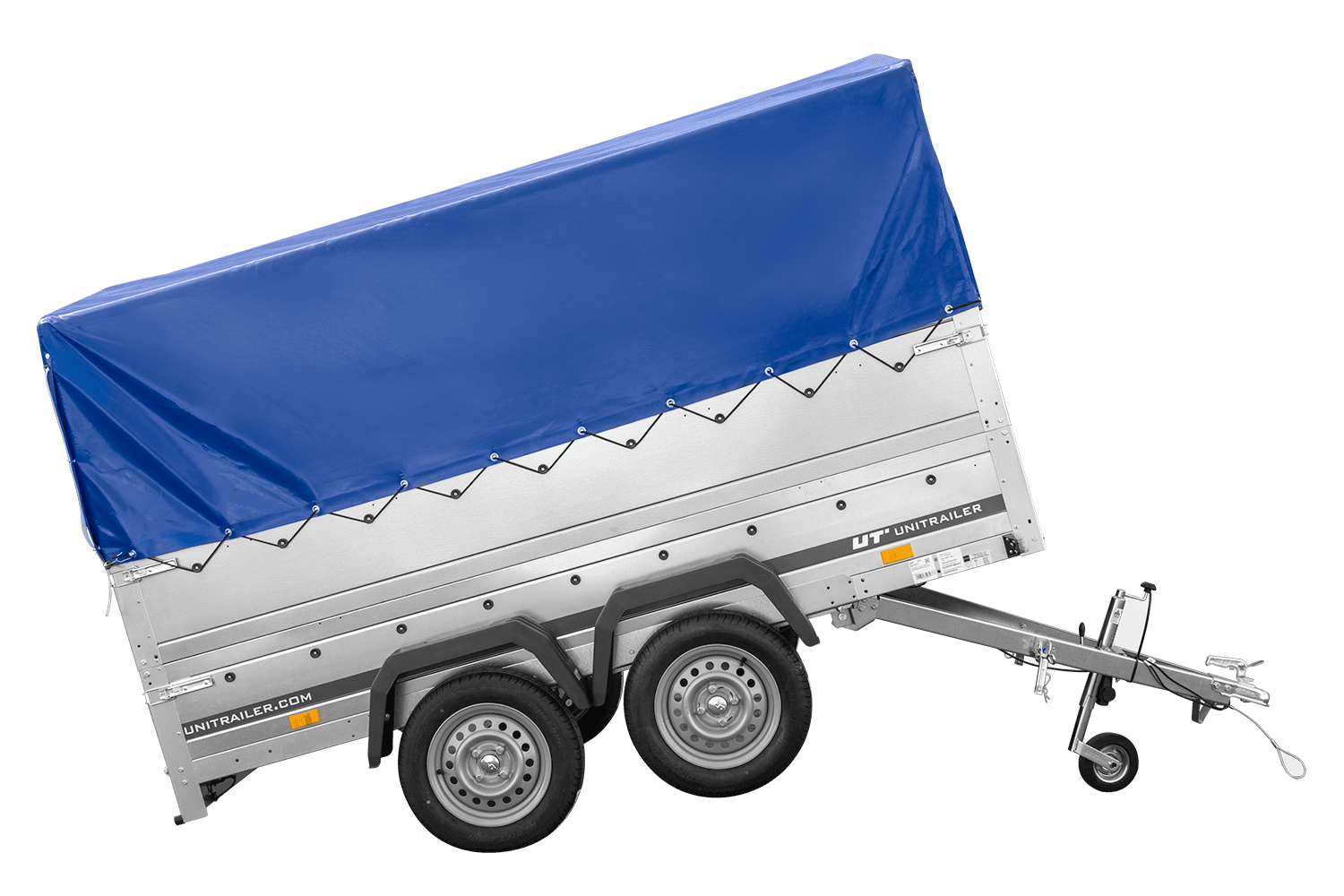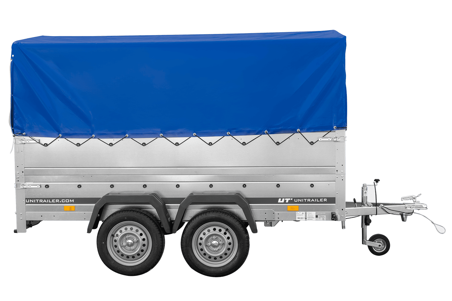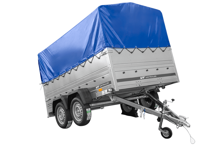 Přívěs UNITRAILER GARDEN 265/2 KIPP s bočnicemi BIS, rámem H-0 a modrým krytem