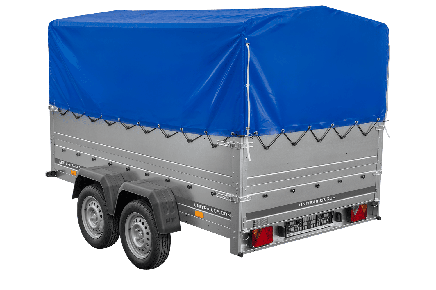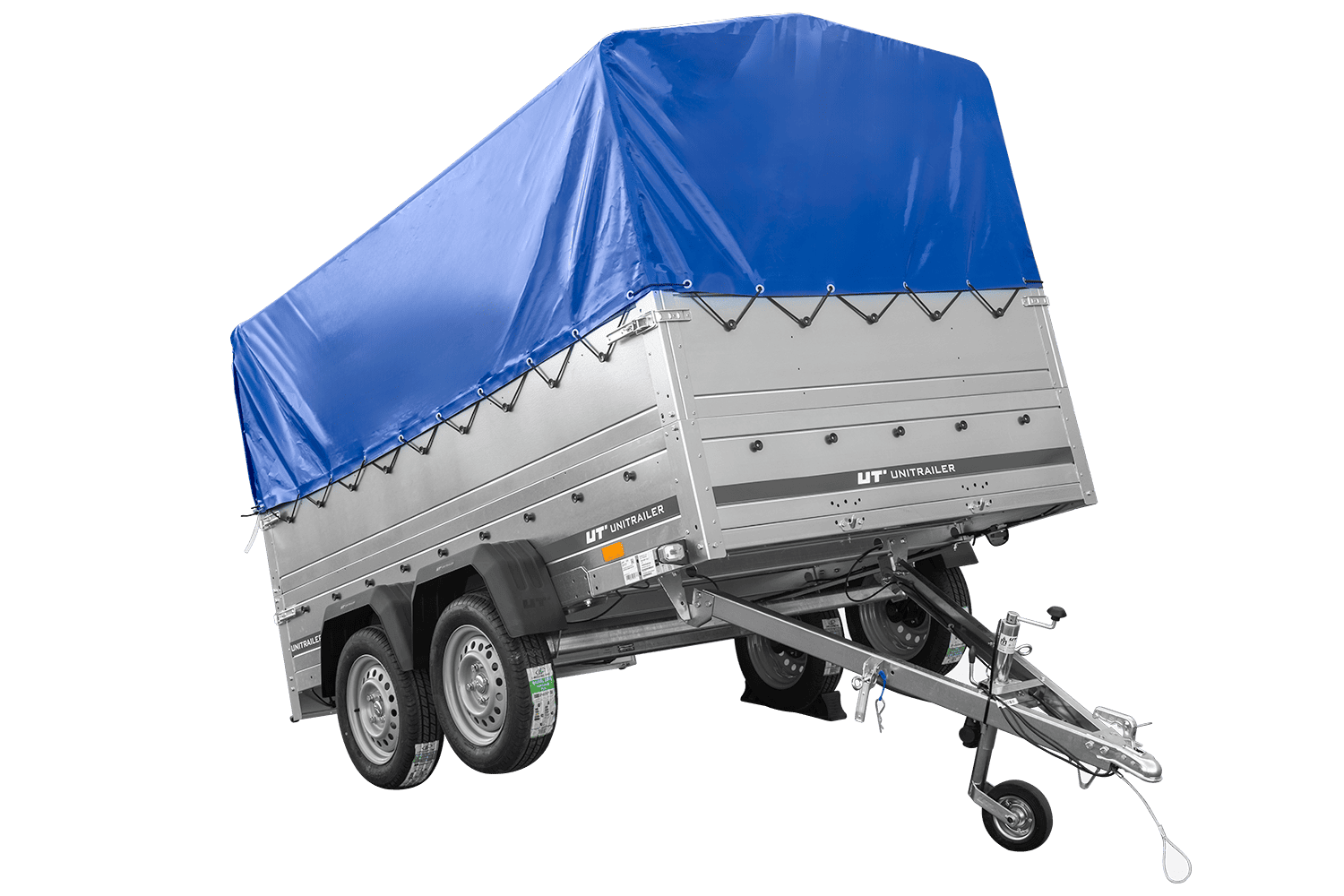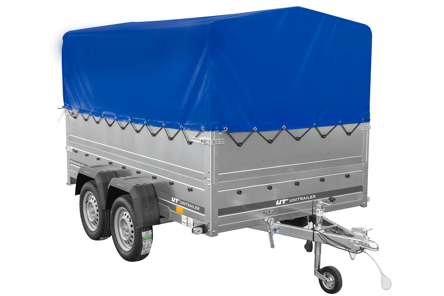Přívěs UNITRAILER GARDEN 265/2 KIPP s bočnicemi BIS, rámem H-0 a modrým krytem