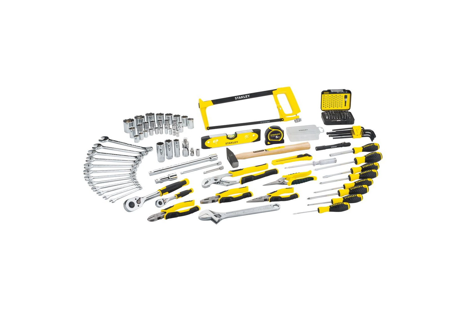 - Stanley STMT98109-1 je profesionální sada nářadí obsahující až 142 dílů, uzavřených v pevném hliníkovém pouzdře. Uvnitř najdete mimo jiné: nástrčné klíče 1/4" a 1/2", kleště, šroubováky, kladivo, pilu, vodováhu, svinovací metr, baterku a sadu bitů.