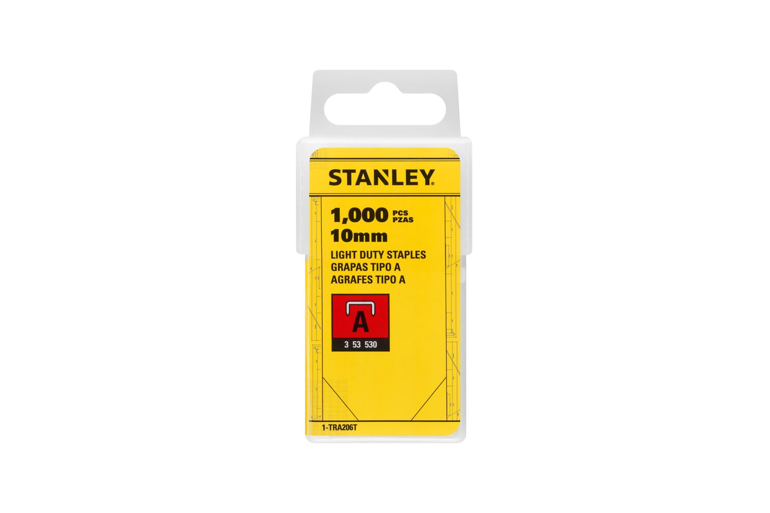 - Ocelové sponky Stanley 1-TRA206T (typ A, 3/53/530, 10 mm) jsou odolné příslušenství pro upevňování látek, fólií a síťoviny. Jsou vyrobeny z pozinkované oceli, takže jsou odolné vůči korozi. Tato sada s 1 000 díly je dodávána v ochranném pouzdře a je kompa