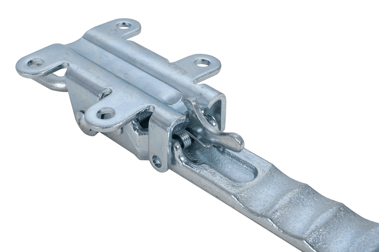 Excentrický boční tažný mechanismus EXZV 10-1 od společnosti WINTERHOFF je robustní hardwarový prvek pro přívěsy určený k bezpečnému a trvalému zajištění boků nákladních, zemědělských a užitkových přívěsů. Tažné zařízení má maximální délku 280 mm a rozsah nastavení čepu 90 až 130 mm. Jeho maximální nosnost je až 1000 kg , což zajišťuje jeho odolnost i při náročném používání . Zámek je vybaven nastavitelným čepem ve tvaru litého „oka“, který umožňuje přizpůsobení různým montážním konfiguracím, a také pružinovým zamykacím mechanismem , který zabraňuje náhodnému otevření během jízdy .