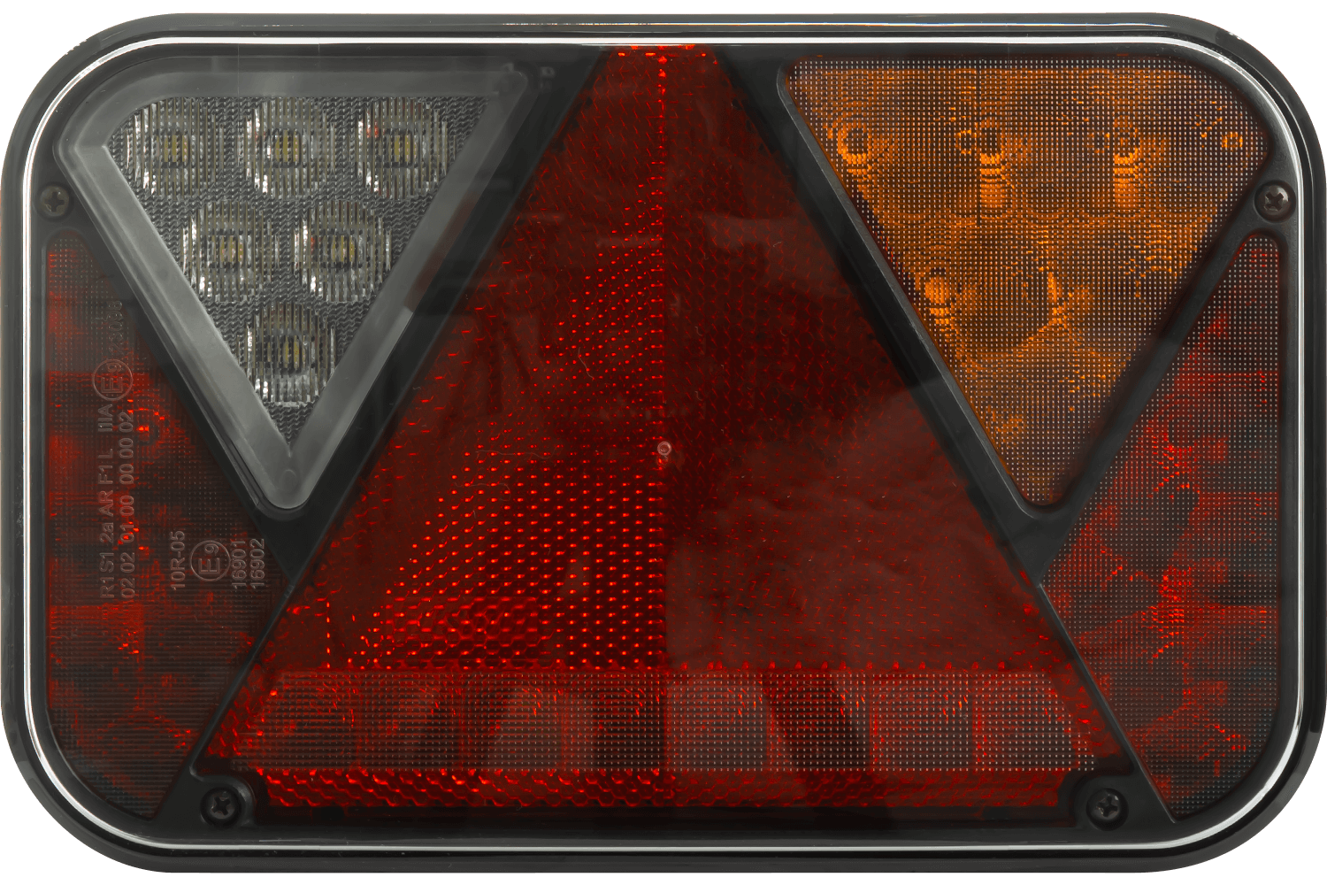 Funkce zadních světel: obrysové světlo , které zajišťuje viditelnost vozidla při jízdě v noci; brzdové světlo , signalizace brzdění; směrové světlo , které umožňuje řidiči naznačit úmysl odbočit ; couvací světlo (pravé světlo), které usnadňuje couvání zlepšením viditelnosti za vozidlem; mlhové světlo (levé světlo) , které zvyšuje bezpečnost za obtížných povětrnostních podmínek, jako je mlha nebo silný déšť ; osvětlení registrační značky , které zajišťuje viditelnost registrační značky vozidla v noci ; a reflexní trojúhelník , který zvyšuje viditelnost vozidla .