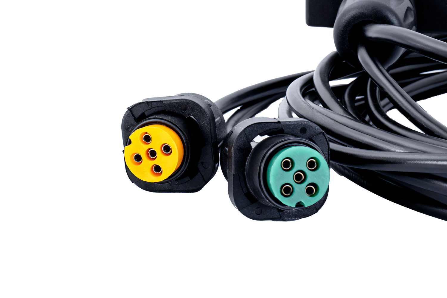 Kabeláž je vybavena dvěma 5pinovými bajonetovými konektory pro připojení zadních světel. Bajonetový systém zajišťuje rychlou a bezpečnou instalaci a eliminuje riziko náhodného odpojení během jízdy. Konstrukce konektoru zaručuje vodotěsné spojení a chrání kontakty před korozí, čímž zajišťuje dlouhodobý a bezproblémový provoz celého systému osvětlení přívěsu.