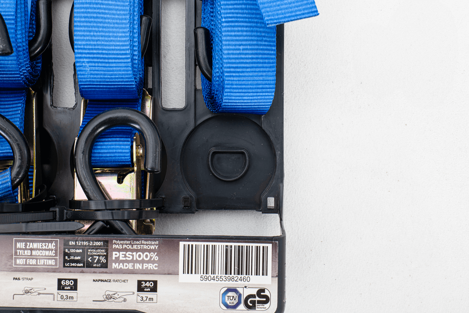 Společnost UNITRAILER klade důraz na kvalitu svých popruhů, které jsou vyrobeny z odolných a netažitelných materiálů. Všechny kovové komponenty – háčky a napínací mechanismus – jsou vyrobeny z odolné, antikorozní oceli, což zajišťuje bezpečné a dlouhodobé používání v různých povětrnostních podmínkách. Každý popruh je opatřen průhledným štítkem s fólií s informacemi v polštině a angličtině. Pro větší pohodlí a bezpečnost je na přezce a háčcích vyryto také maximální pracovní zatížení, což vám umožňuje rychle zkontrolovat výkon popruhu, i když je štítek poškozen.