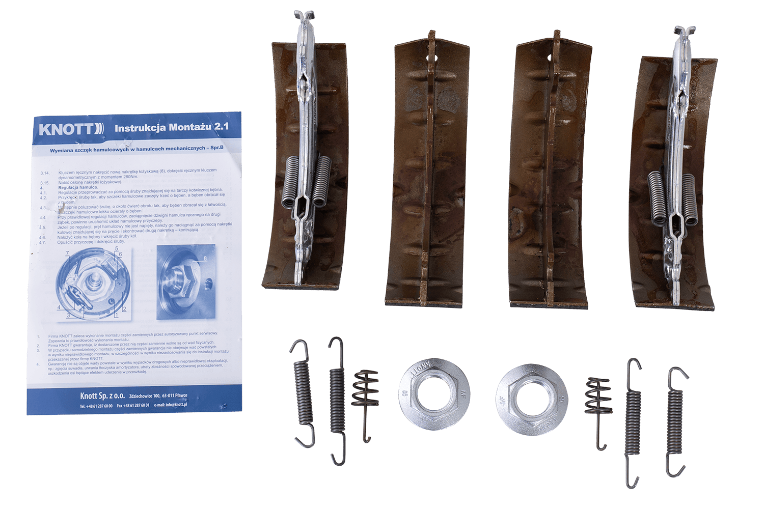 - Sada brzdových čelistí KNOTT 47276S určená pro brzdové systémy s bubny 200x50 mm. Má mechanismus Backmat, který umožňuje automatické rozpoznání couvající přívěsné brzdy.