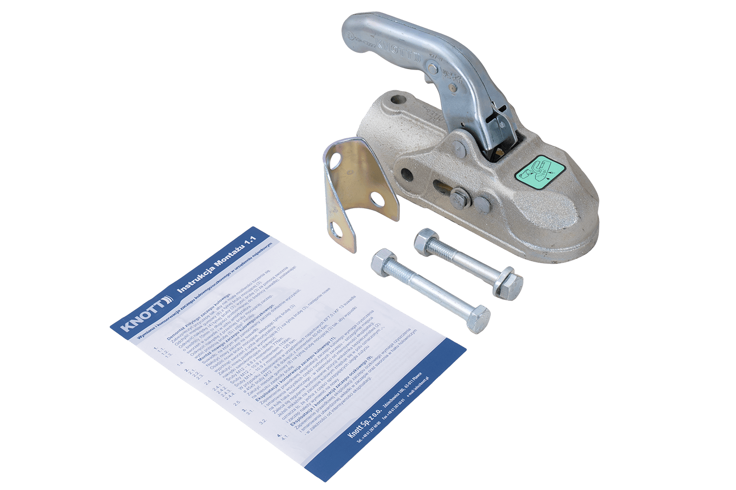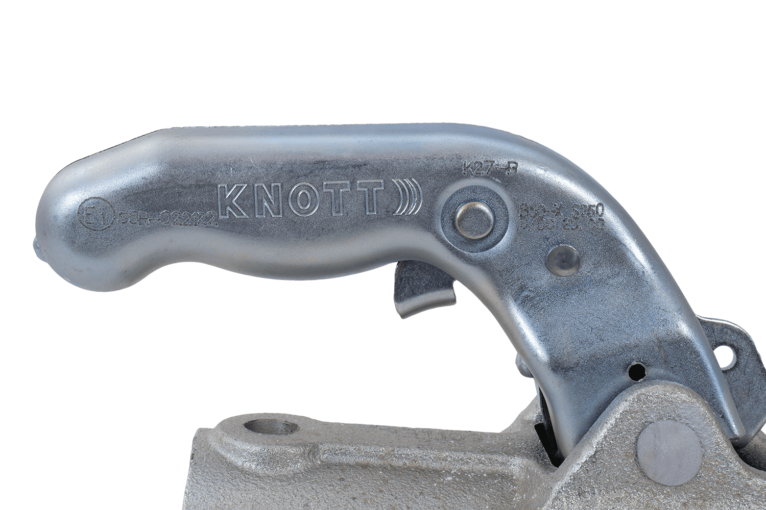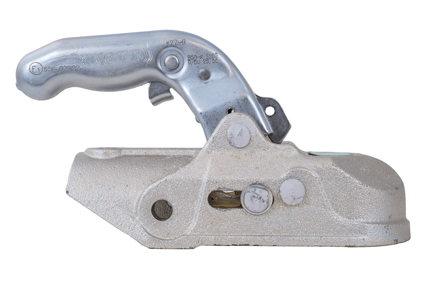 - Litinová kulová spojka KNOTT K27-B určená pro těžké přívěsy a plošinové přívěsy o hmotnosti do 2700 kg. Je namontován na trubkové oji o průměru 45 mm a nabízí stabilní spojení s tažným vozidlem. Sada obsahuje šrouby, matice a podložku.
