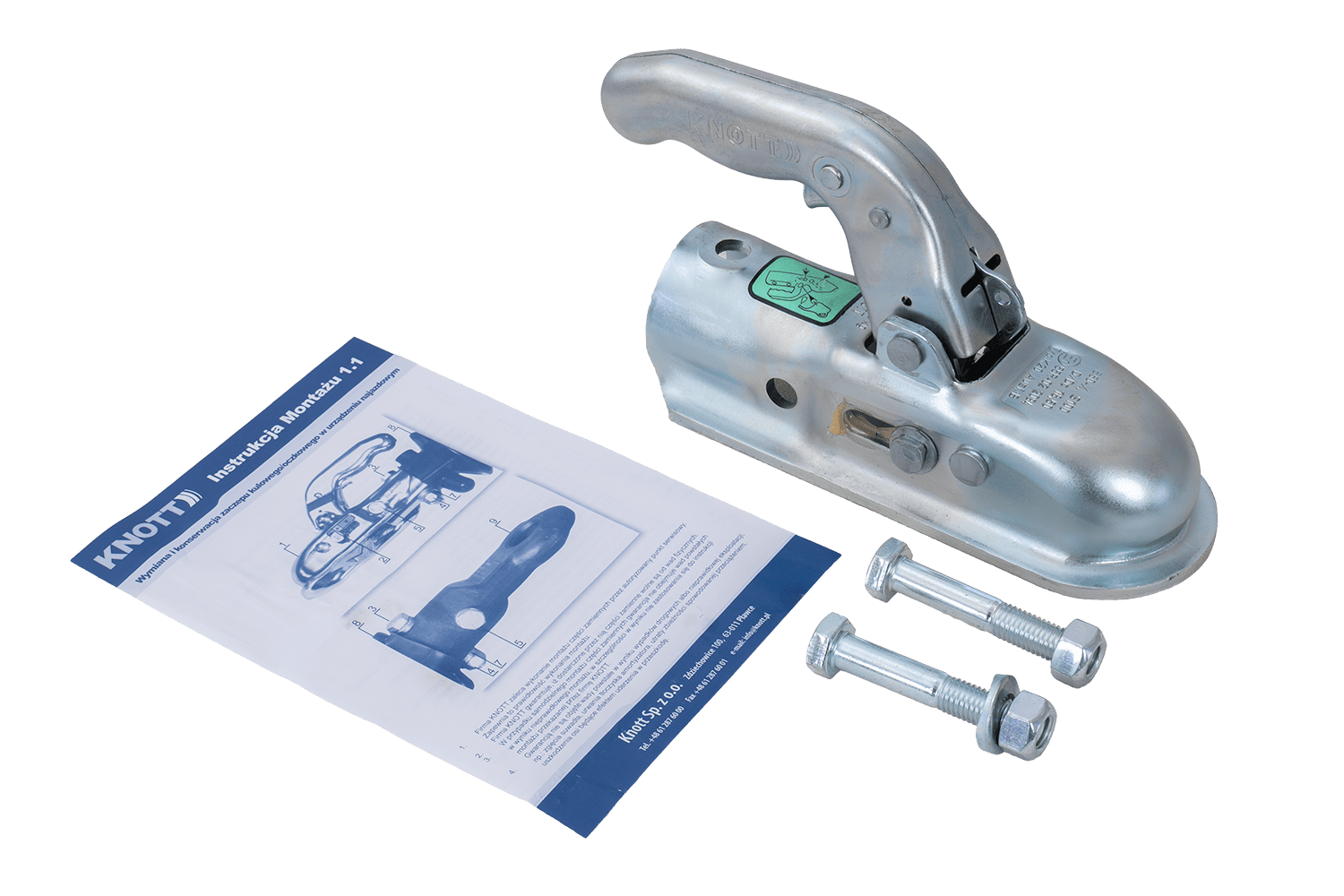 - Litinová kulová spojka K20-B od společnosti KNOTT určená pro těžké přívěsy a plošinové přívěsy o hmotnosti do 2000 kg. Je namontován na trubkové oji o průměru 45 mm a nabízí stabilní spojení s tažným vozidlem. Sada obsahuje šrouby, matice a podložku.