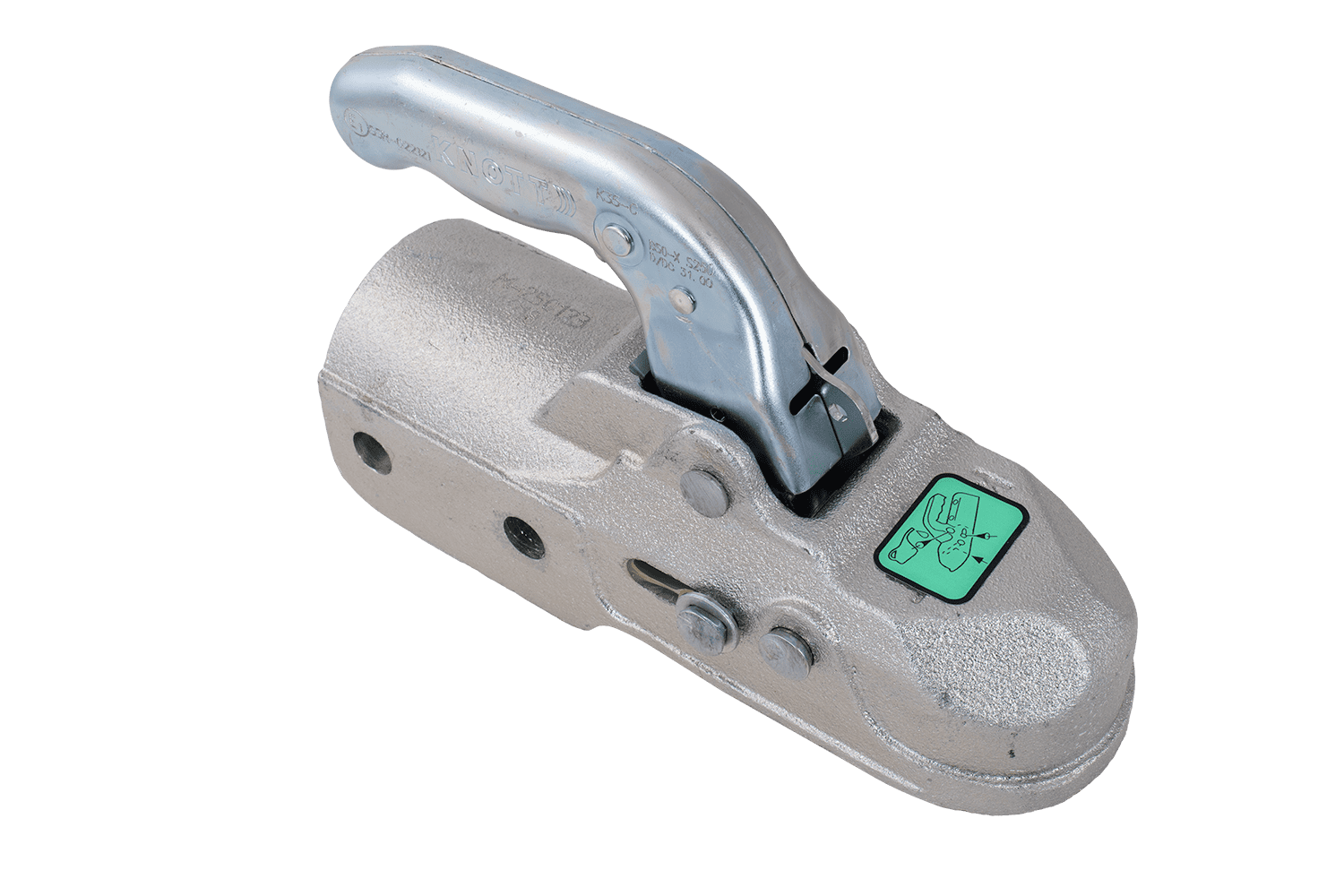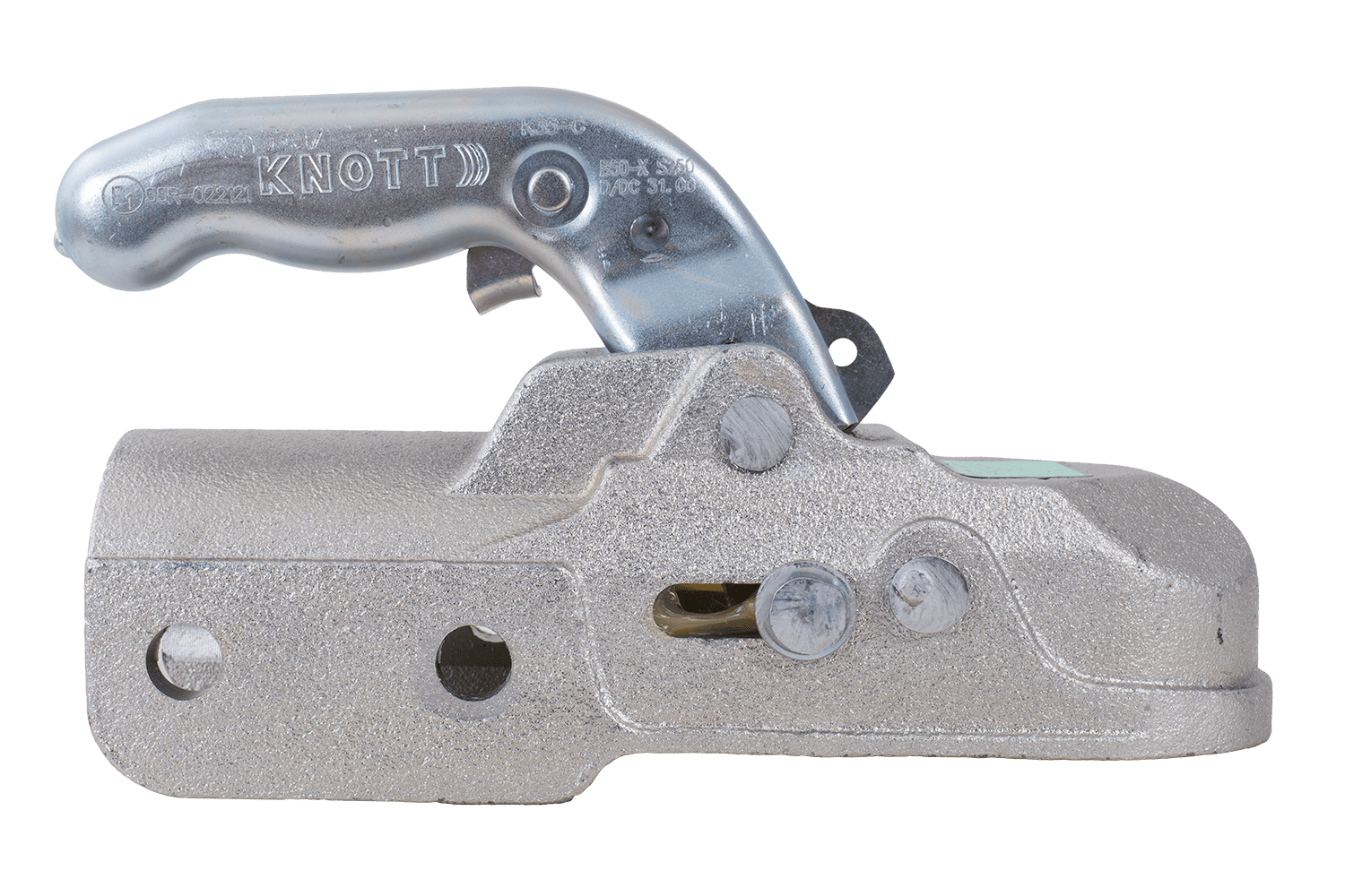 - Litinová kulová spojka KNOTT K35-C určená pro těžké přívěsy a plošinové přívěsy o hmotnosti do 3500 kg. Je namontován na trubkové oji o průměru 60 mm a nabízí stabilní spojení s tažným vozidlem. Sada obsahuje šrouby a matice.
