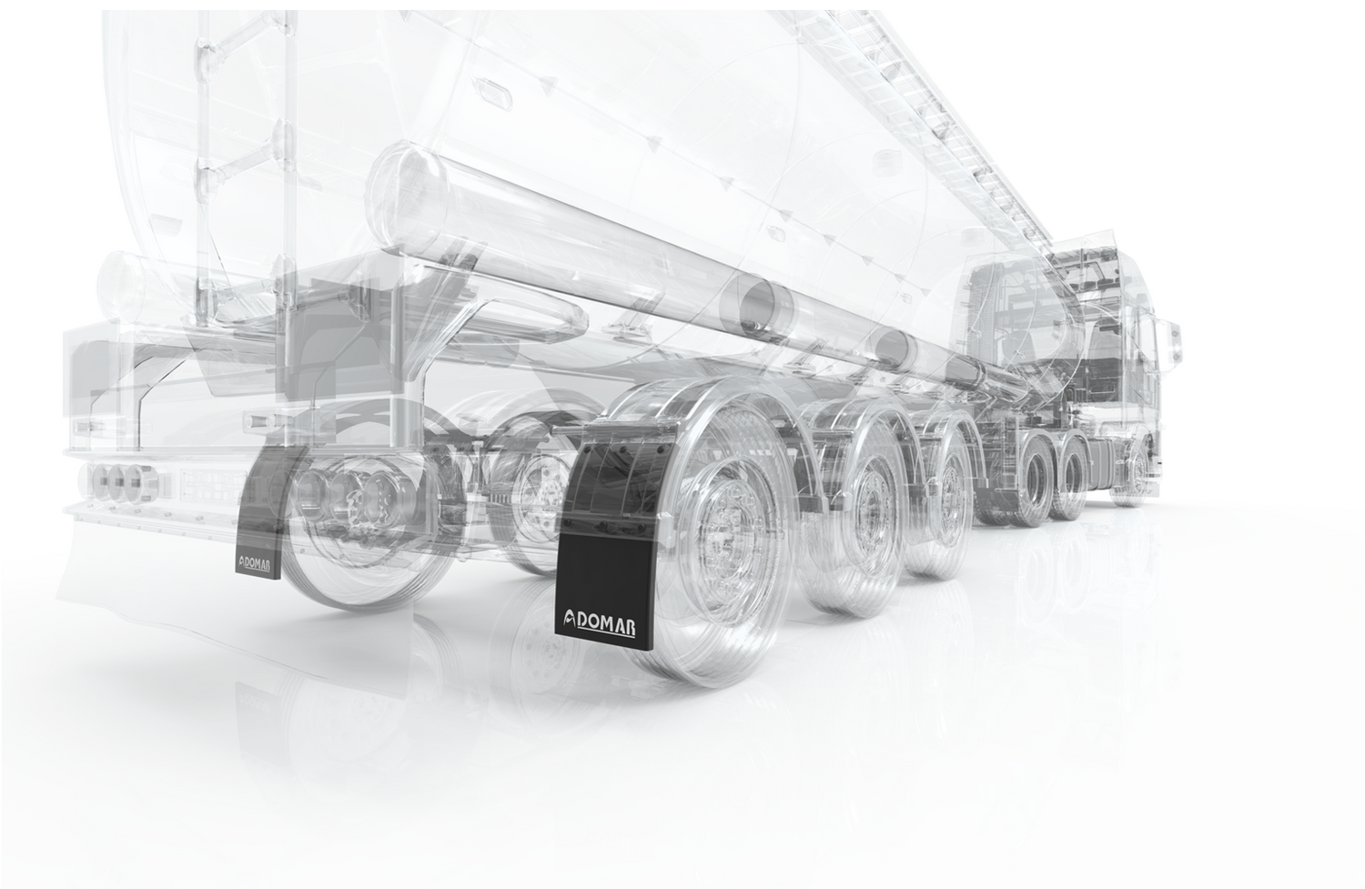 Zástěrka DOMAR je vyrobena z odolného PVC materiálu s vysokou odolností vůči teplotám a náročným provozním podmínkám . Tento materiál se vyznačuje absorpcí vody přes 76 % , čímž účinně snižuje rozstřik a zvyšuje bezpečnost jízdy.